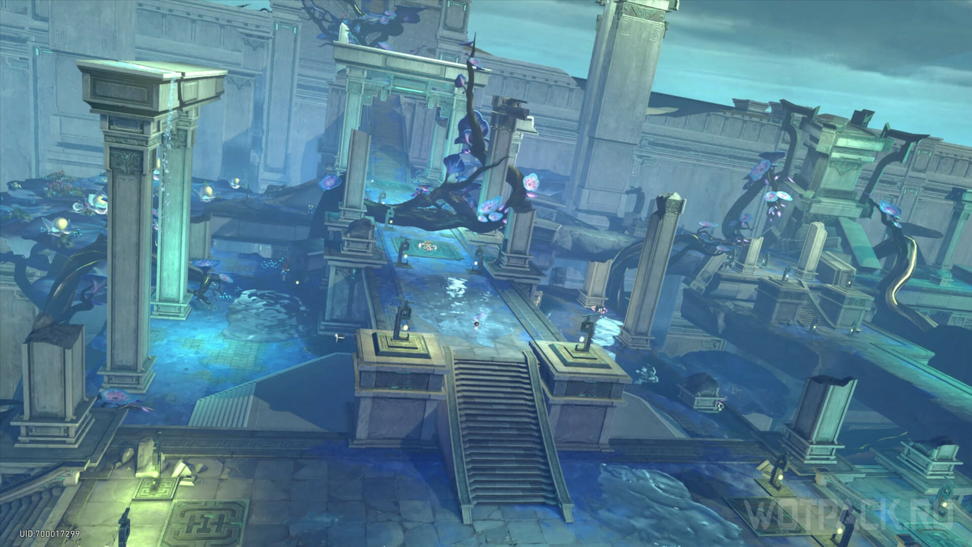 Спускайтесь к причалу при помощи специального лифта в левой стороне, перед которым услышите знакомые голоса из Эха прошлого. В нижней зоне встретитесь с водяными тенями, напоминающими Дань Хэну о «прошлом» Верховном старейшине.