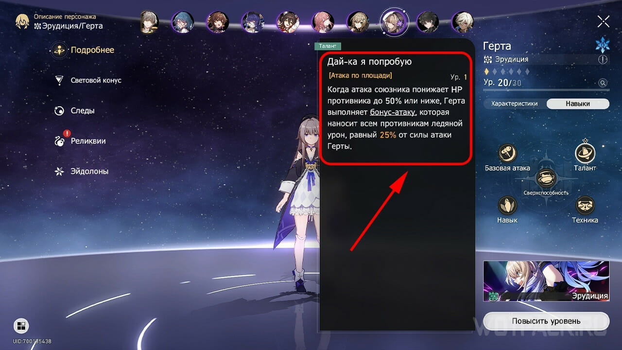 - Базовая атака – самая простая атака, применение которой накапливает очки навыков.