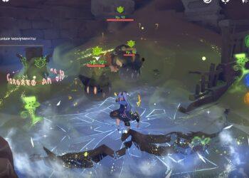 - Второй монумент расположен правее, однако он будет недоступен. Подойдите к нему в упор, чтобы появились плесенники и гео-слаймы. Победите две волны противников, чтобы открыть тотем и активировать его.