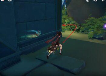 - Первый находится на северо-западе от входа. Просто нацельтесь на него заряженной Дендро атакой или используйте навык.