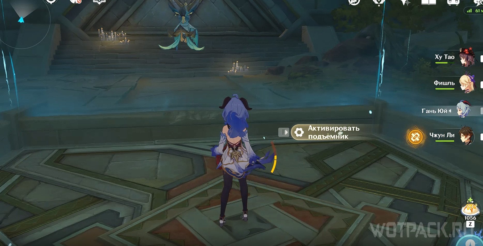 Если кнопка недоступна, взаимодействуйте с механизмом рядом — он располагается перед подъемником и позволяет вручную поднимать или отпускать сам «лифт». В комнате наверху также можно подобрать богатый сундук за победу над группой противников.