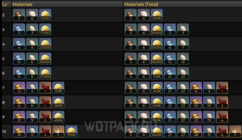 | Уровень | Базовое HP | Базовая атака | Базовая защита | Крит.шанс% |