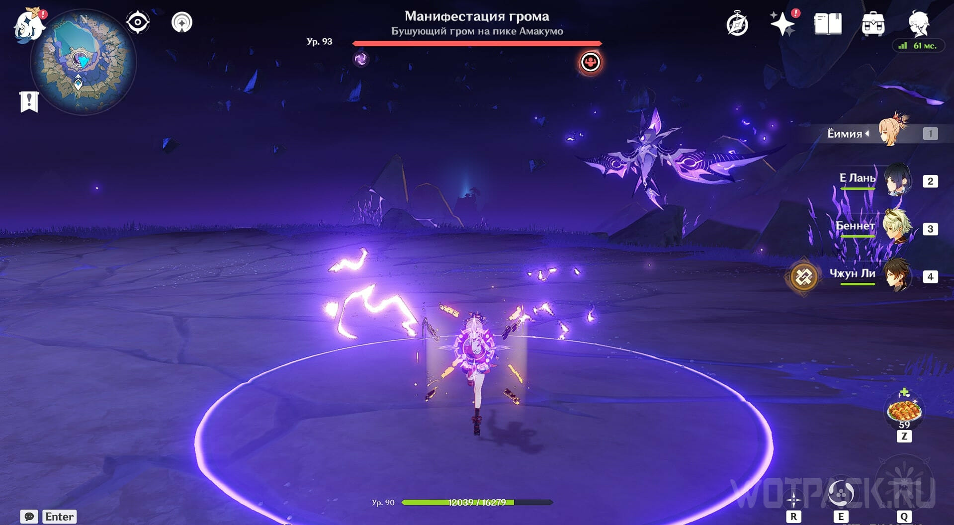 The manifestation of thunder possesses element Electro и has resistance to this element. For this reason, Electro characters cannot be taken on it. In addition, the boss hangs on himself permanent Electro Status, which is useful for creating reactions.