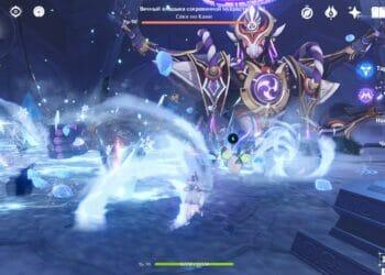 Boss Scaramuccia controls several elements: Pyro, Cryo, Hydro и Anemo. And although, being an automaton, he is not very agile, if hit, any blow can be fatal. To simplify the battle, players have access to Akash's newest terminal, which, when receiving charges, deals additional damage to the enemy. Shouki no Kami, the Prodigal's normal attacks create energy blocks that look like crystals. When interacting with them, the terminal begins to accumulate energy.