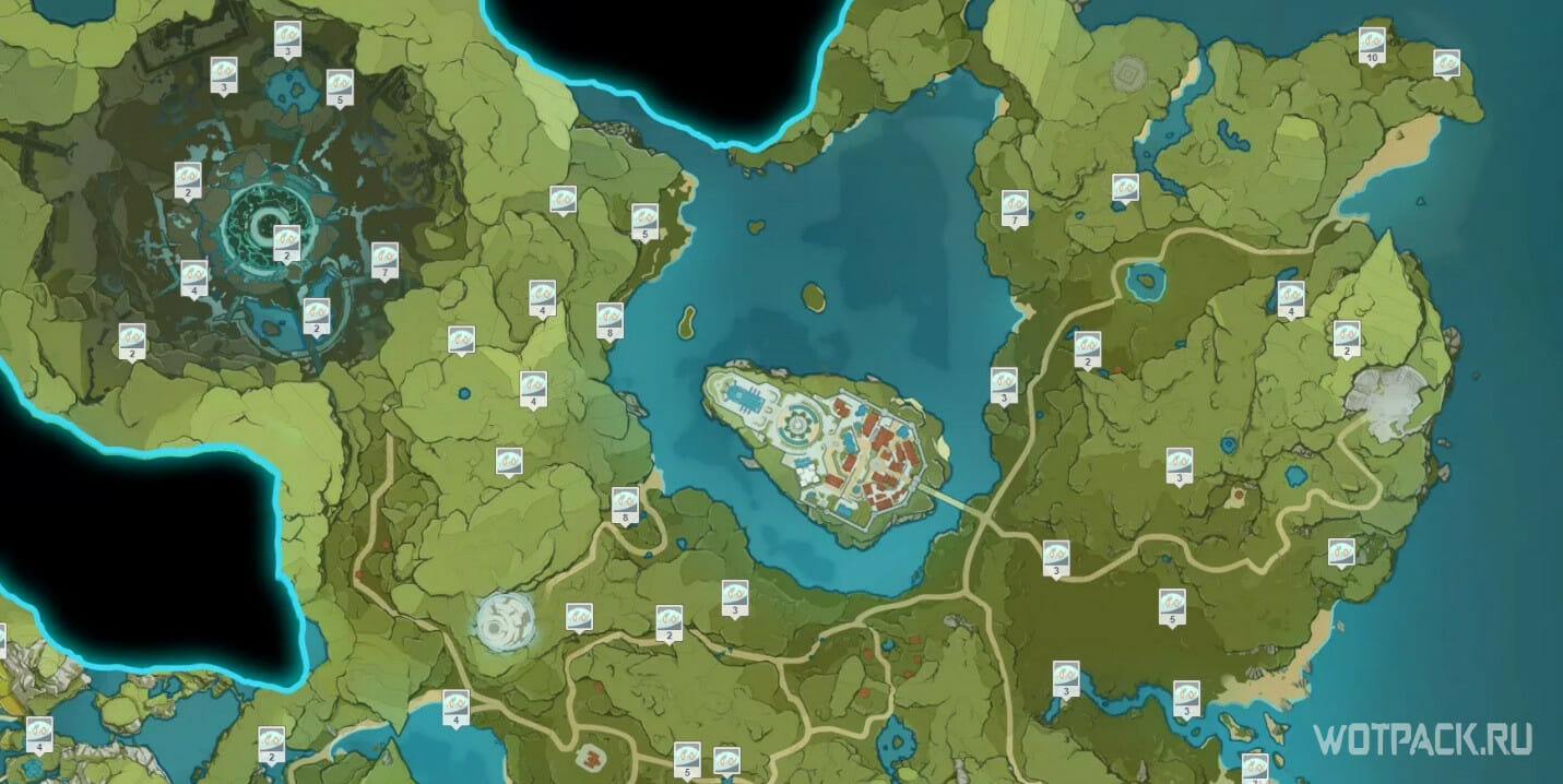 This region is not very suitable for farming due to the fact that there are not many habitats, and clusters of insignificant sizes. It is better to look for slimes on the coast of the islands of Narukami, Watatsumi and Tsurumi.