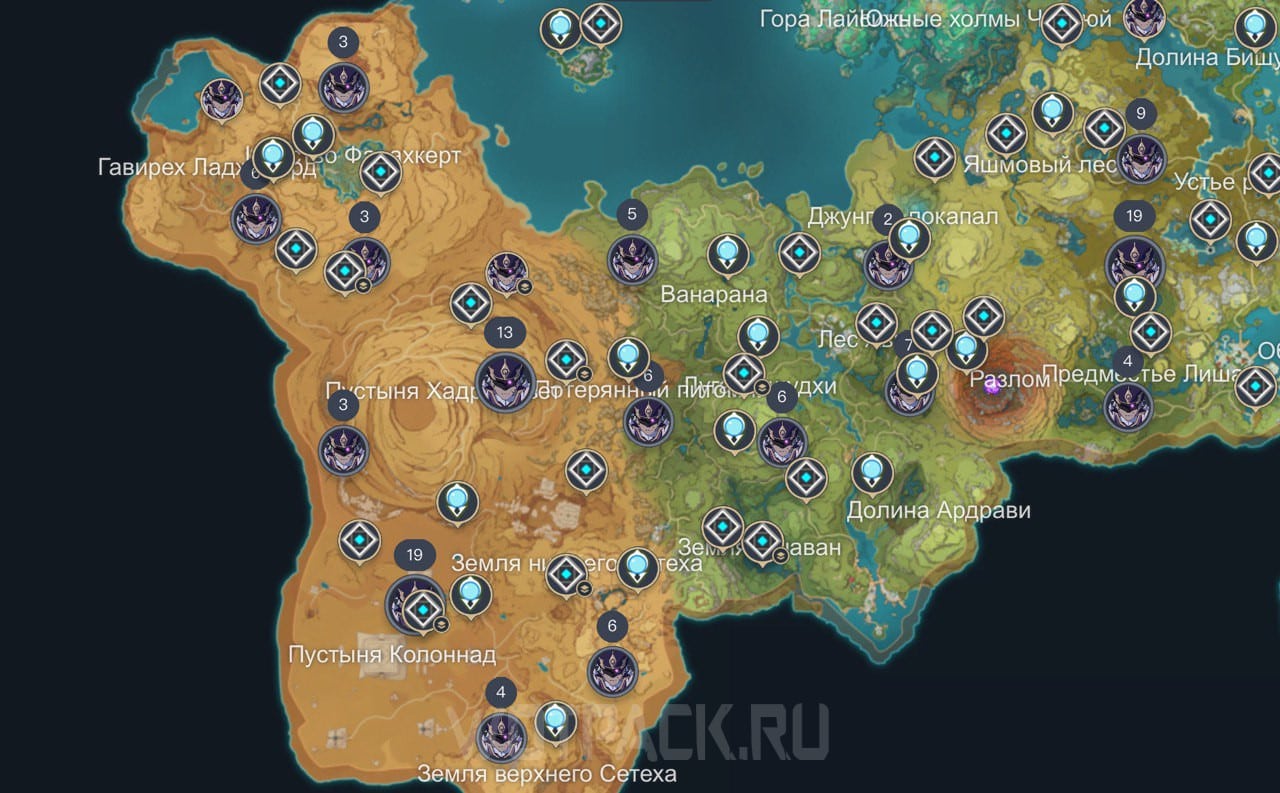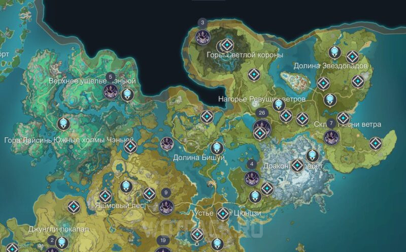 Больше всего противников находится в Ли Юэ. В Мондштадте Агент стоит на границе с Драконьим хребтом, а в Инадзуме чаще встречается в компании Зеркальной девы.