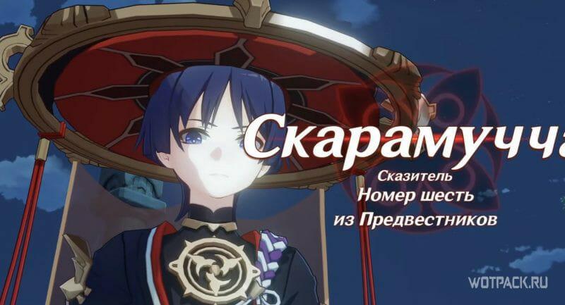 О Скарамучче, шестом предвестнике, стало больше известно в сюжете Инадзумы. А квесты Архонтов в Сумеру еще больше раскрыли его, как героя. В конце концов он присоединился к Путешественнику как Странник.