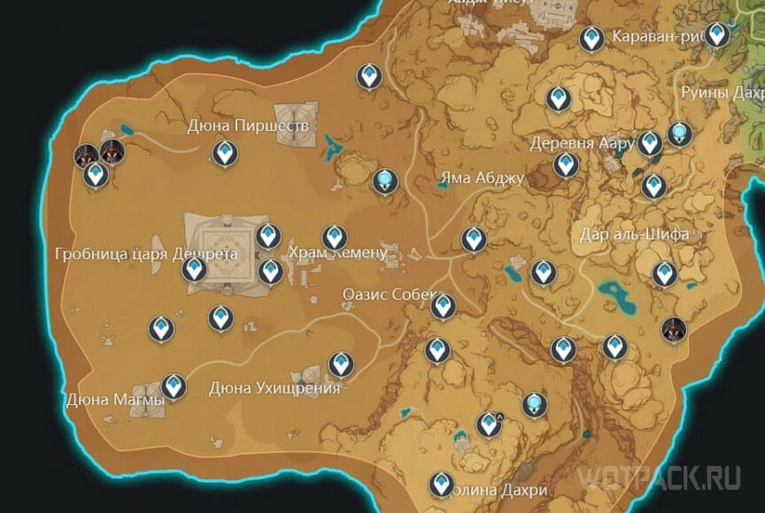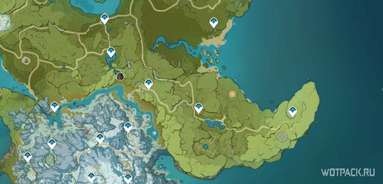 Если способ выше покажется неудобным, стоит воспользоваться интерактивной картой. На ней отображены сразу все Агенты и можно построить удобный маршрут. Далее подробно рассмотрим расположение противников по регионам Тейвата.