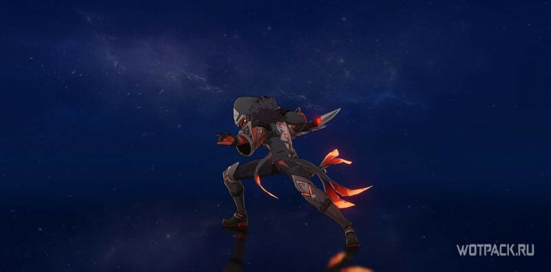 - Невидимость. После огненного щита всегда следует невидимость. Заметить врага можно по небольшому черному дыму, а в зависимости от местности и по следам на песке, колыханию травы. Если во время невидимости на противника будет наложен статус Пиро, Электро, Крио или Гидро, то его силуэт окрасится в красный, фиолетовый, белый или синий цвет (в ночное время силуэт намного ярче). Но не стоит забывать, что элементальная атака персонажа, за которой последует реакция, снимет статус элемента, и врага снова будет сложно увидеть.