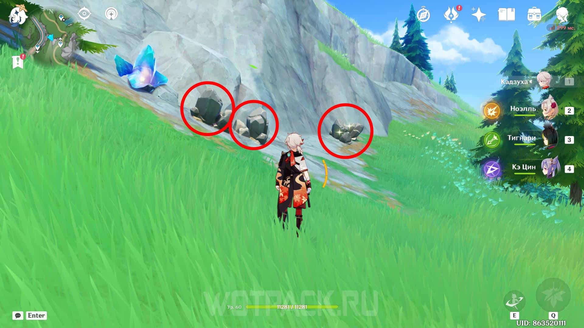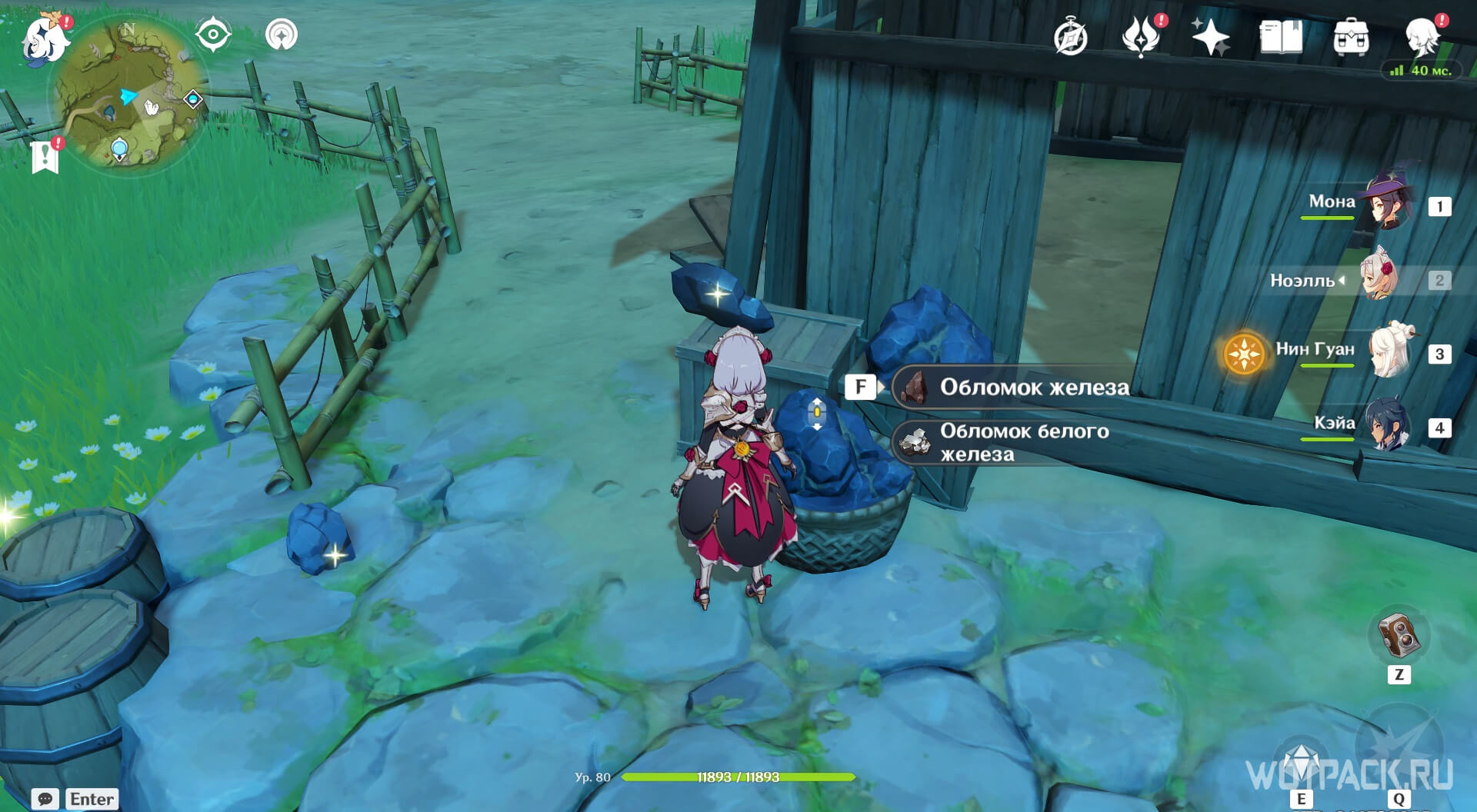 Для фарма стоит взять персонажей с клэймором: Ноэлль, Рэйзора, Дилюка, Дори, Саю или других. Нин Гуан отметит расположение ресурса на миникарте.