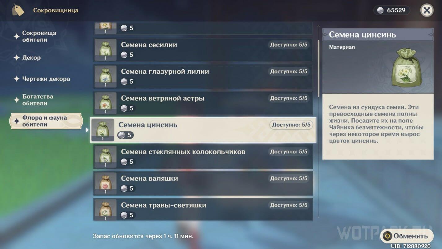 Цветок цинсинь можно купить у двух торговцев. Их магазины регулярно обновляются раз в 3 дня.