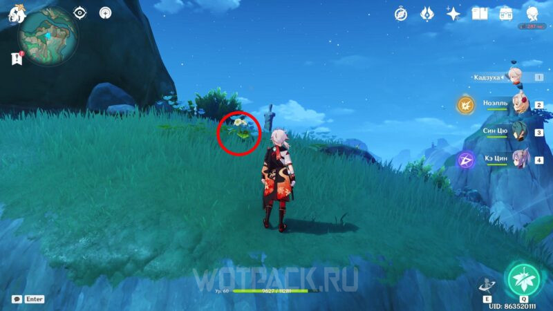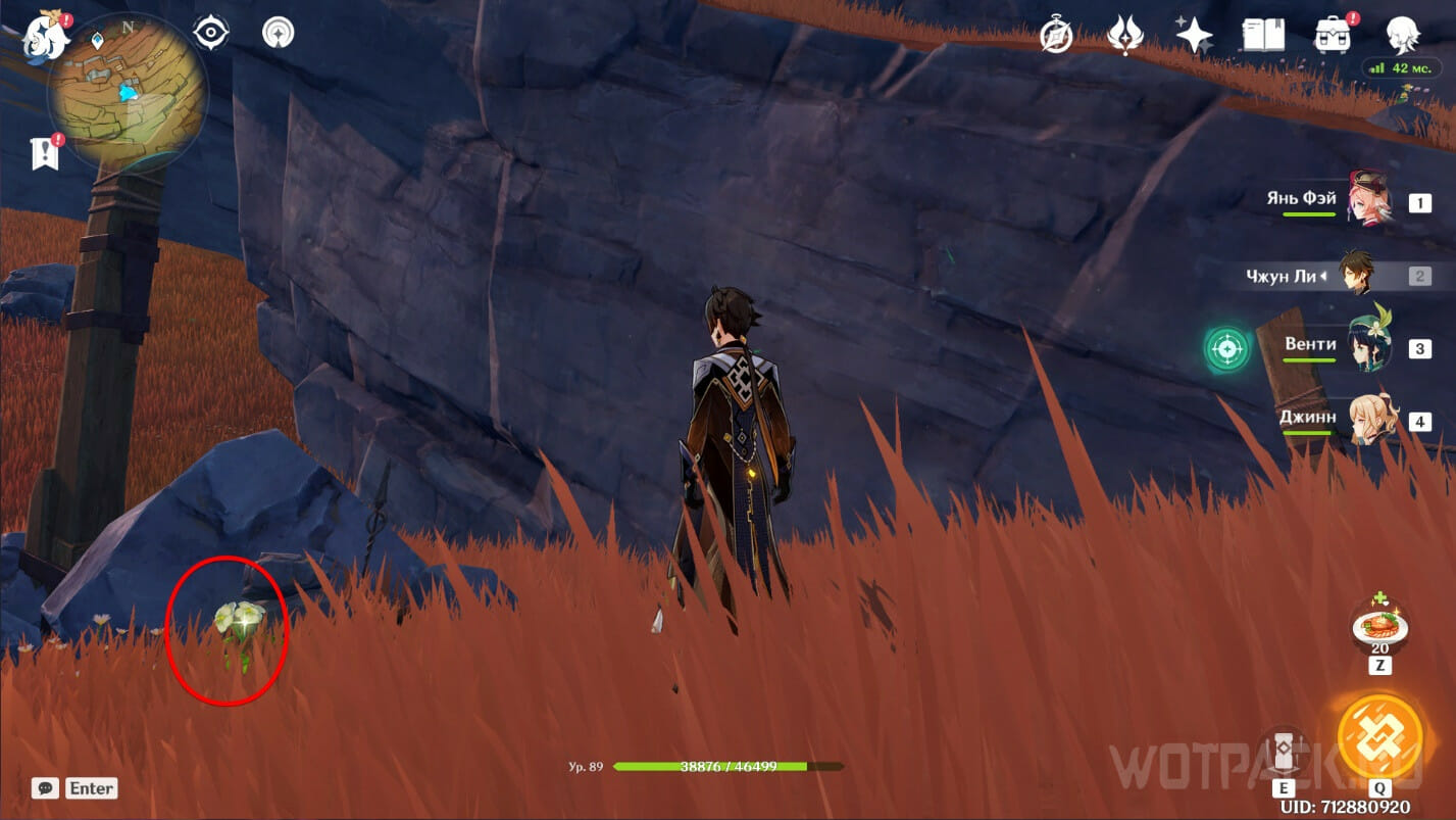 - Маршрут начинается с данжа «Скрытый дворец Уван». Направляйтесь на юго-восток и внизу первого склона обнаружите 1 цветок.