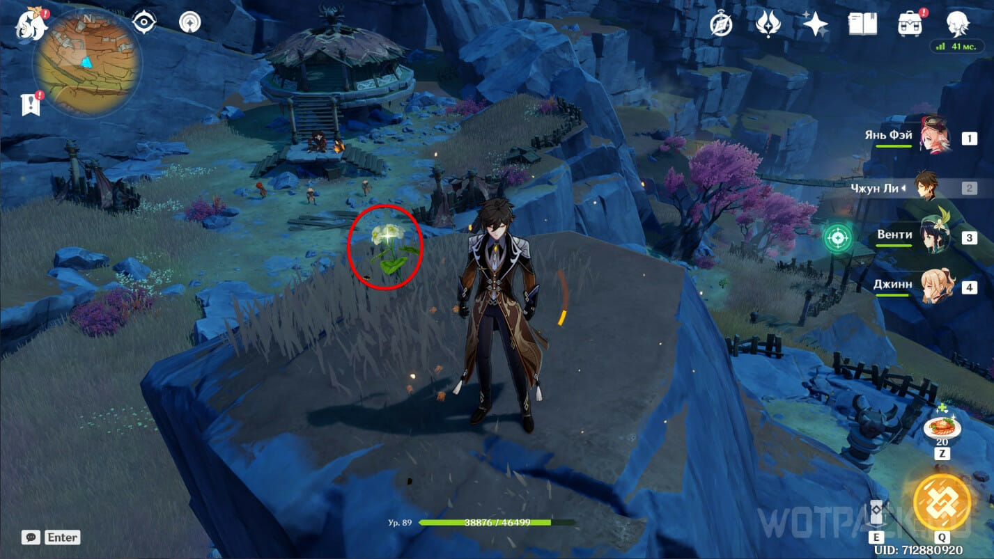 - Цинсинь растет на пригорке за центральной точкой телепортации Яшмового леса – южнее статуи Архонта и чуть к востоку.