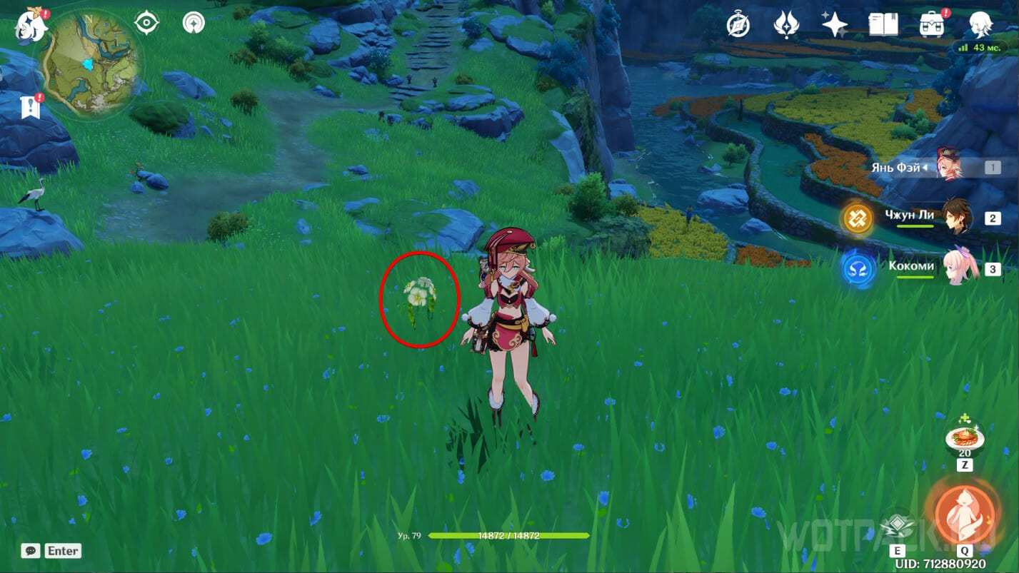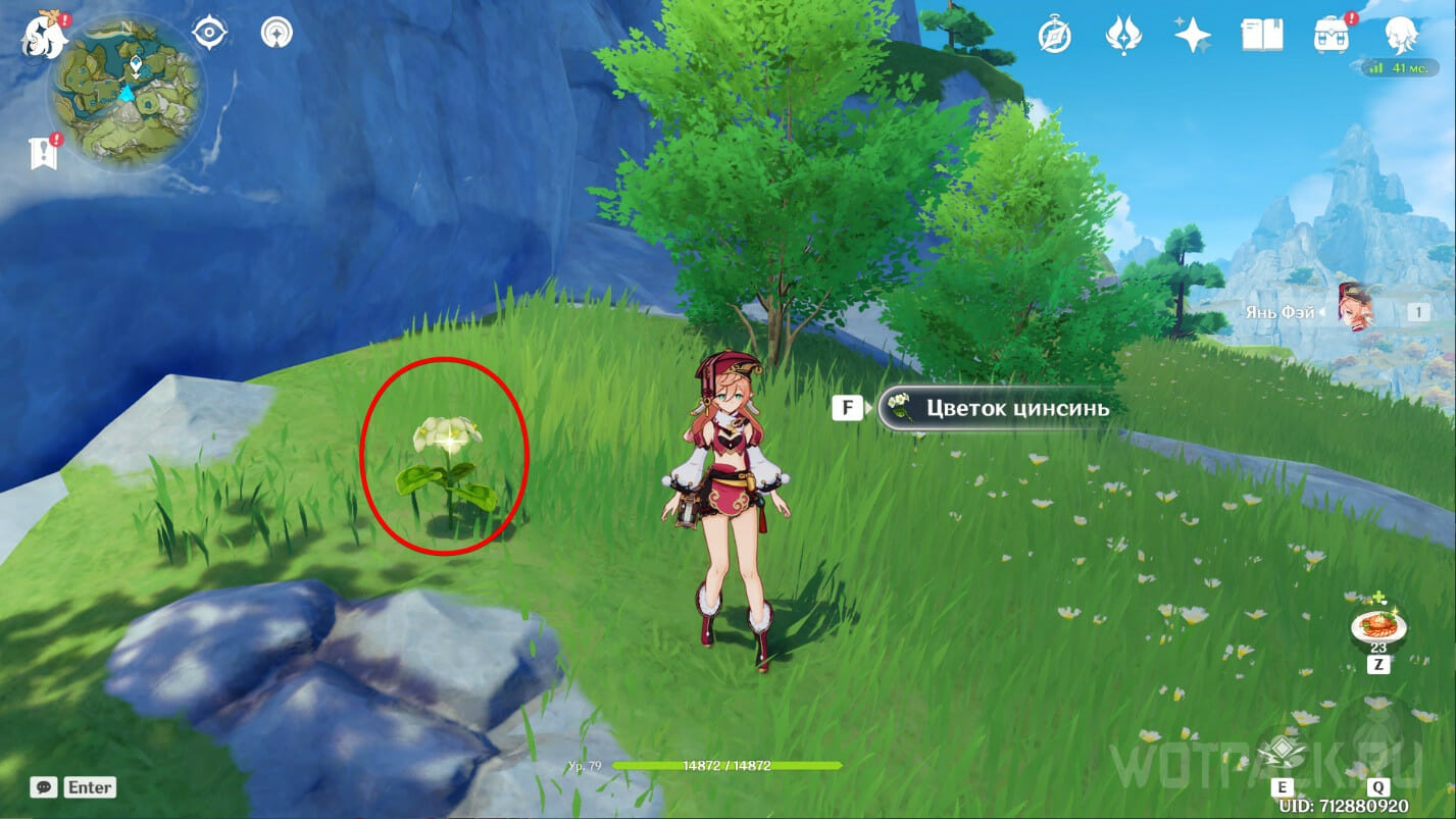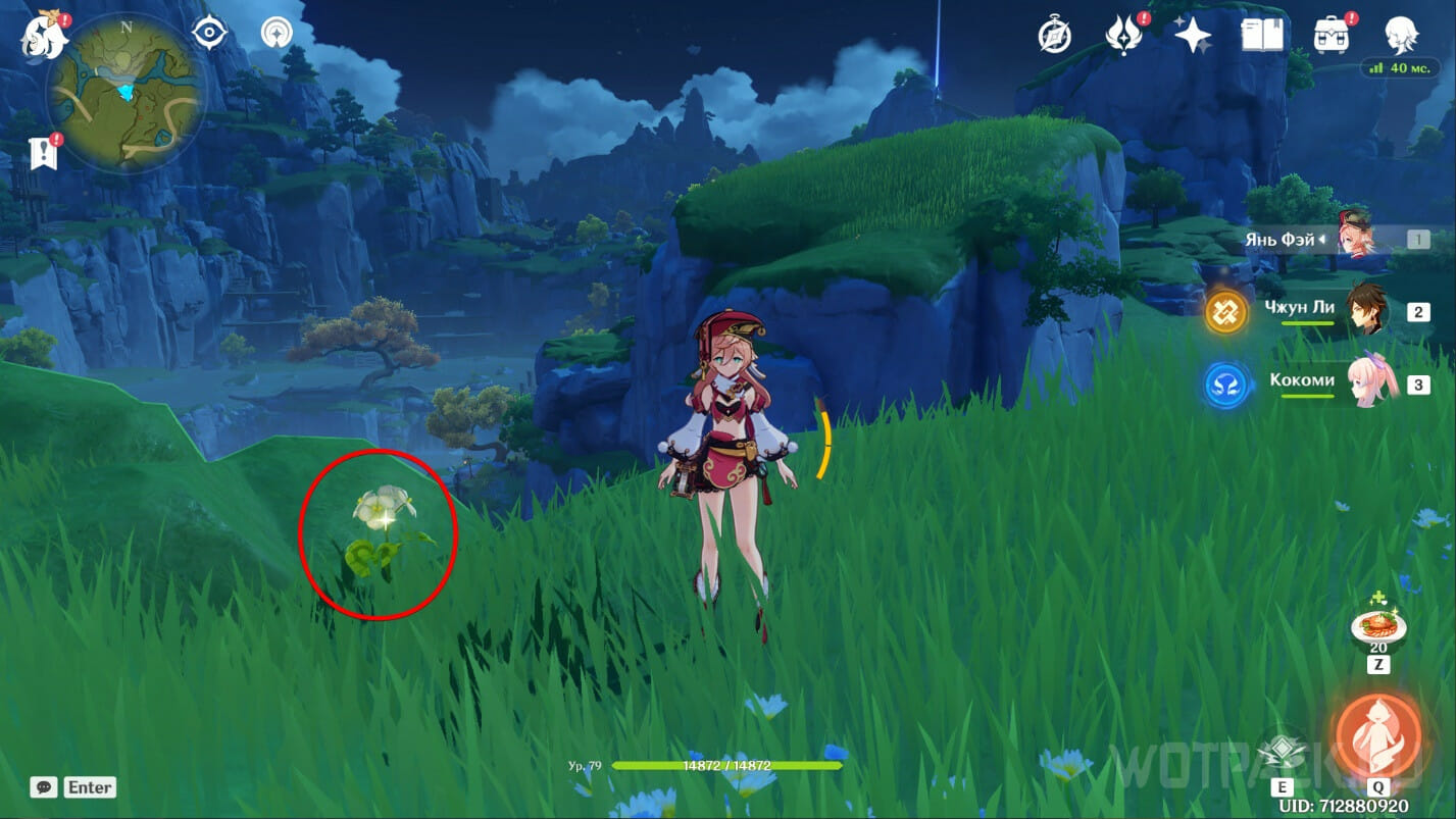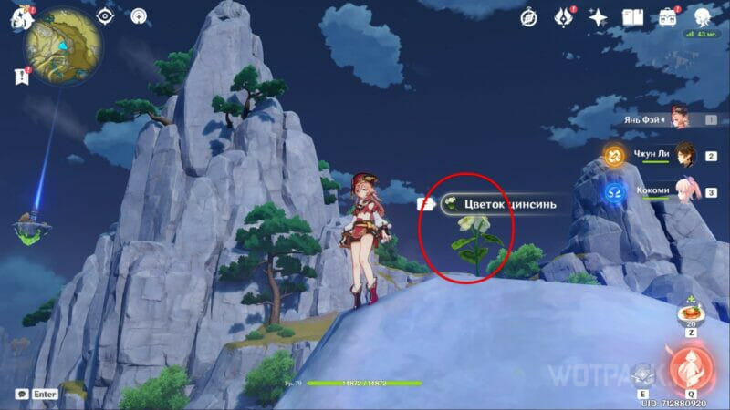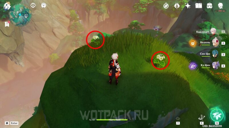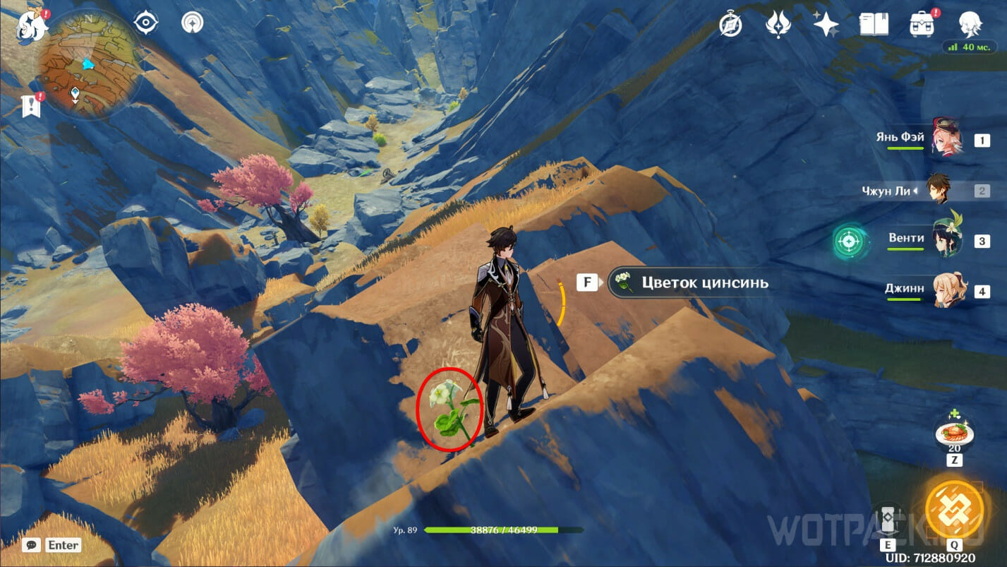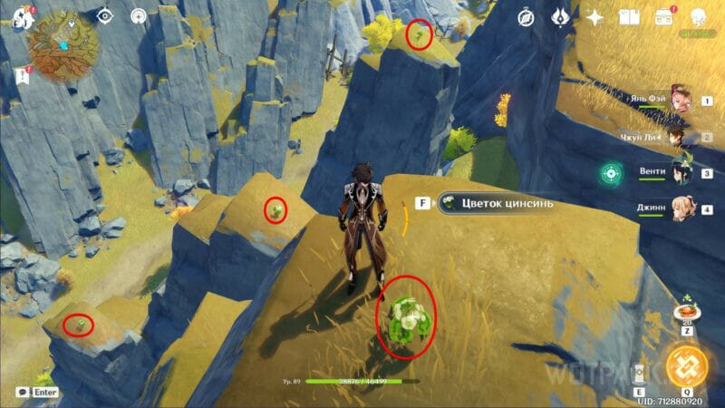 - Осталось найти завершающие 3 цинсинь. Их можно взять в восточно-южной стороне, собирая один за другим. От последнего цветка можете собрать растения с окончания третьего маршрута.