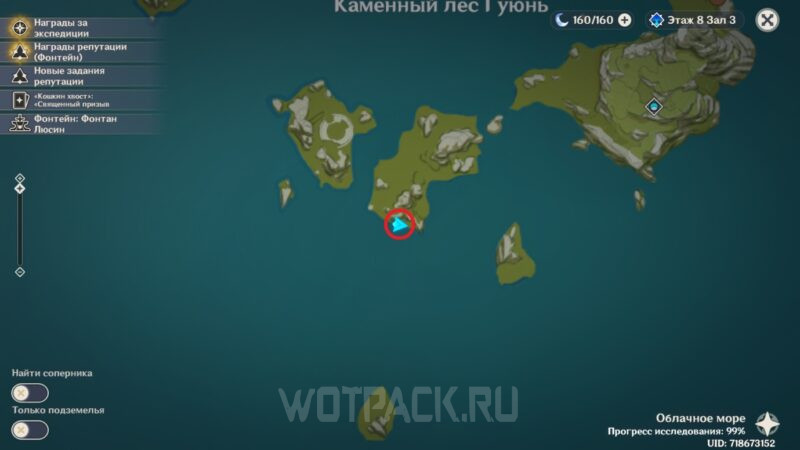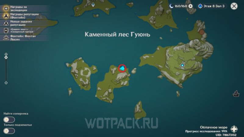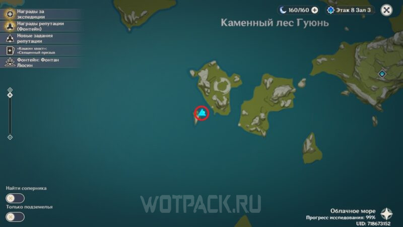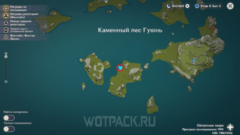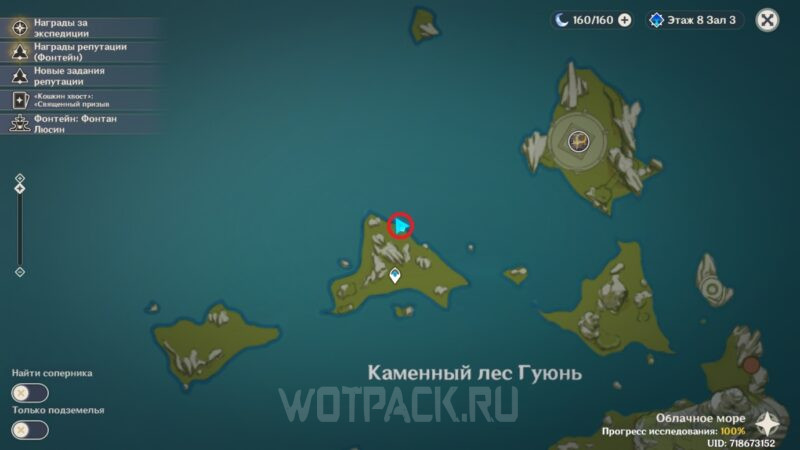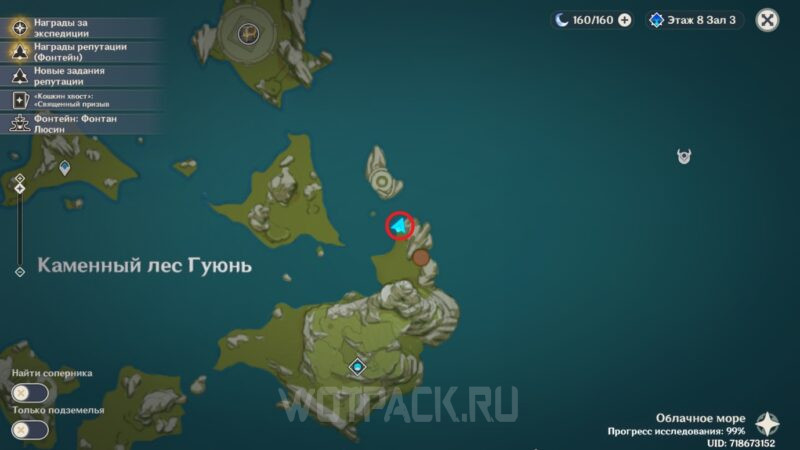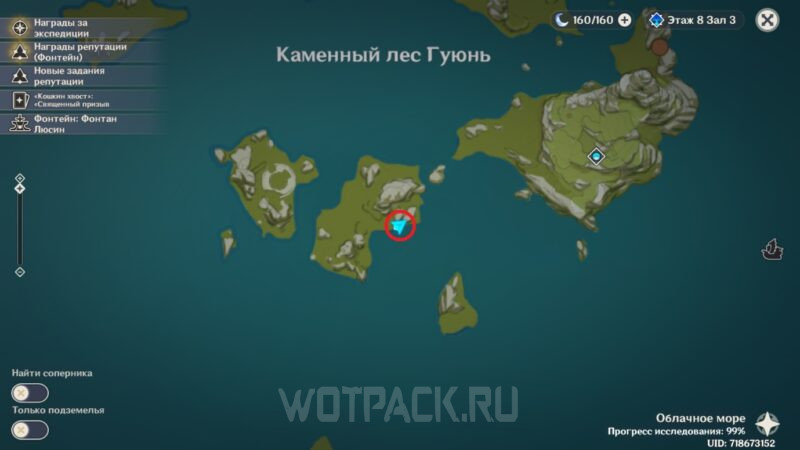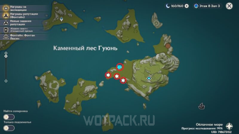 На отдельном восточном острове под названием Каменный лес Гуюнь можно собрать 24 звездных ракушки, при этом придется поплавать и несколько раз телепортироваться между отдельными частями локации.