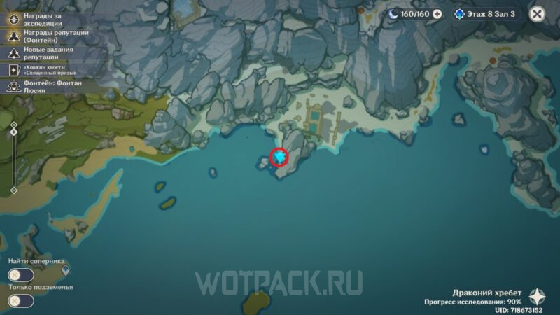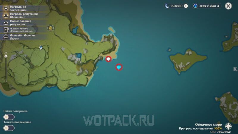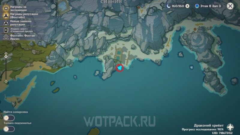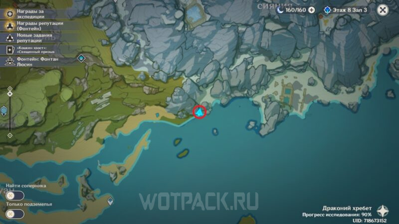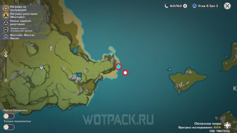 Телепортируйтесь на северо-запад локации и спуститесь к морю, чтобы достать одну диковинку.