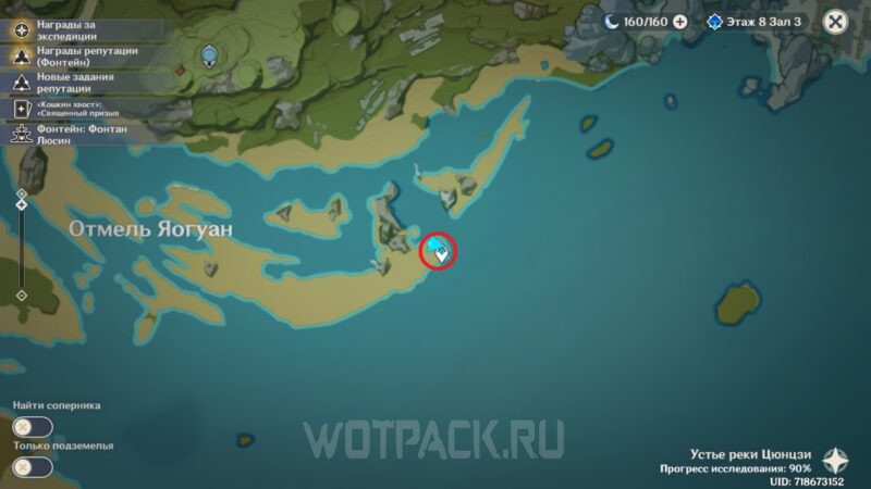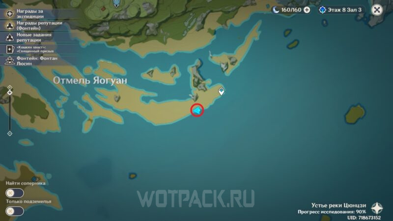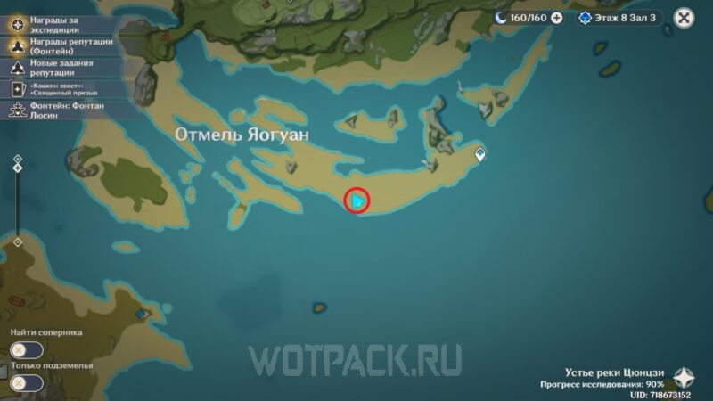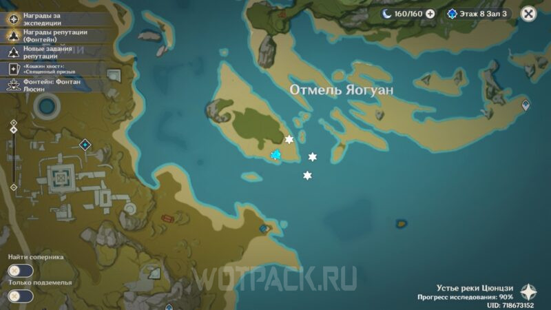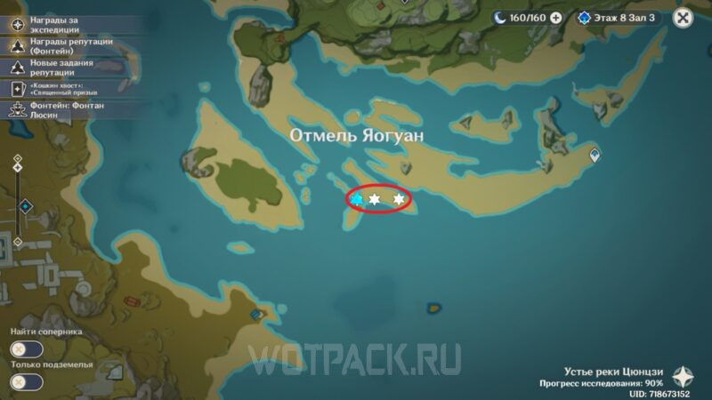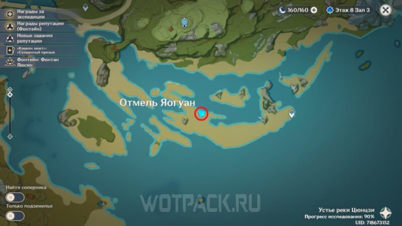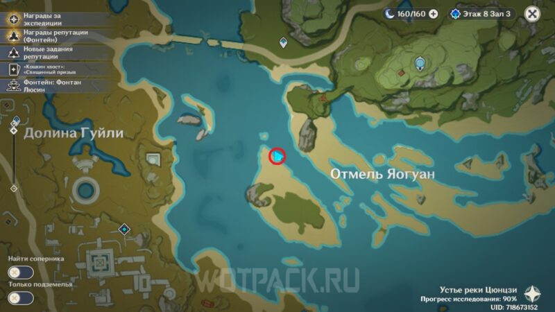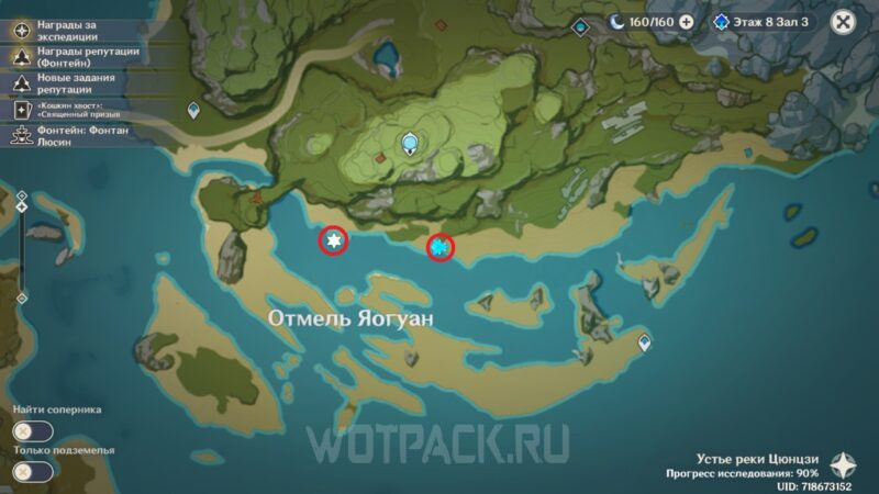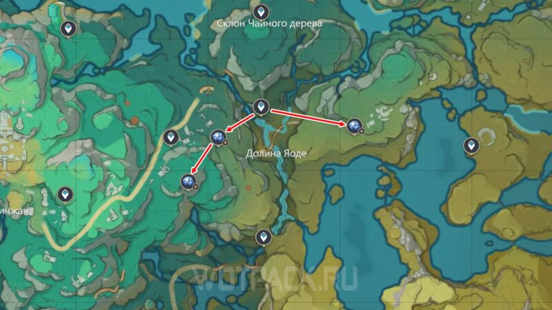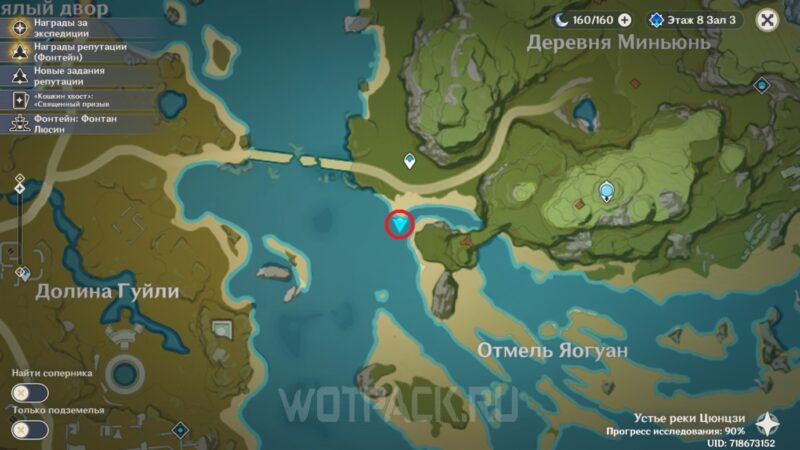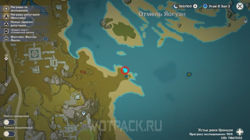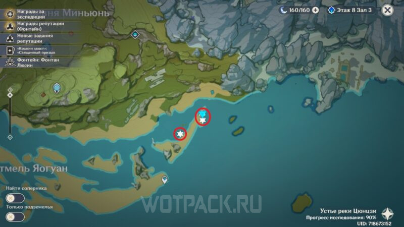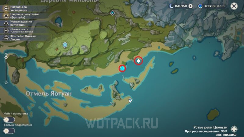 На южном побережье деревни Миньюнь есть отмель Яогуан, где расположены 25 единиц ресурса. Здесь придется несколько раз телепортироваться, чтобы быстро собрать все материалы.