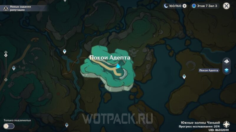 Воспользуйтесь телепортом на юге от Склона Чайного дерева и сначала направляйтесь на восток, чтобы войти в Покои Адепта. Внутри туннеля двигайтесь прямо, а затем сверните налево. Ударьте по каменной вазе и получите 2 единицы ресурса.