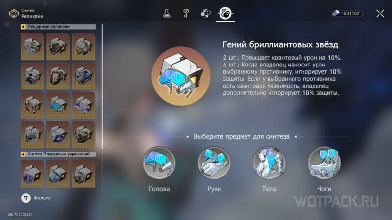 Качество реликвий делится на 2⭐, 3⭐, 4⭐ и 5⭐ редкость.