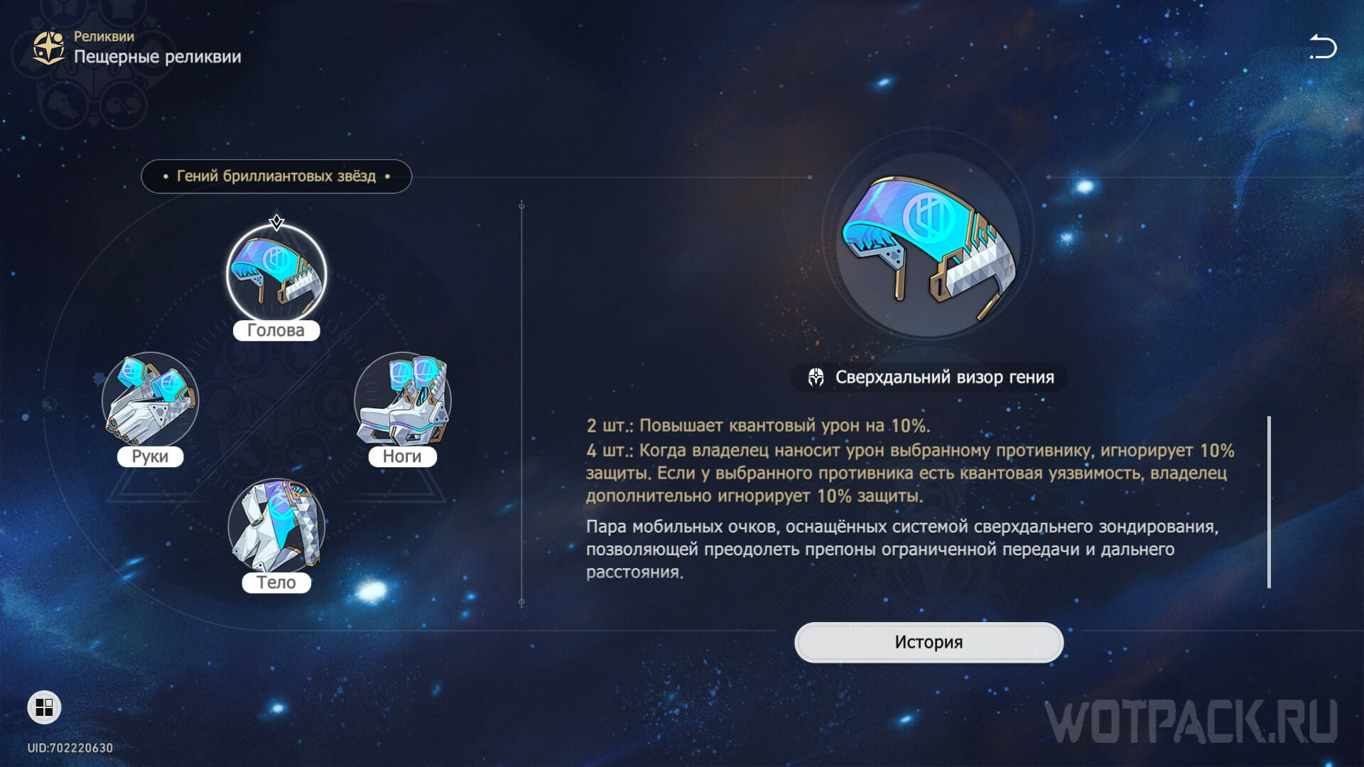 Гений бриллиантовых звезд в Honkai: Star Rail — сет реликвий, который увеличивает квантовый урон и снижает защиту врагов. Можно комбинировать с другими предметами по схеме 2+2 или собирать фулл комплект. Предназначен для мейн и сапп ДД, главная задача которых вносить больше дамага.