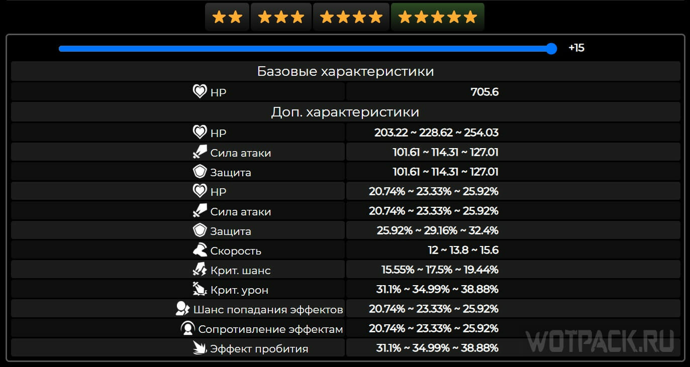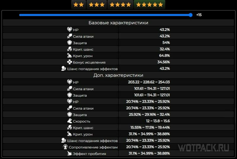 Ниже приведем подробно все возможные показатели у 5⭐ реликвий: