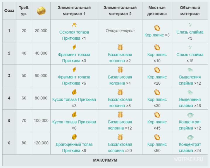 - Осколки, фрагменты, куски и драгоценные камни топаза Притхива – добывается из Гео гипостазиса, Золотого волчьего вожака, Змея руин, Бесконечного механического массива и Древнего геовишапа. Также можно выбить из еженедельных боссов Волчий лорд и Аждаха.