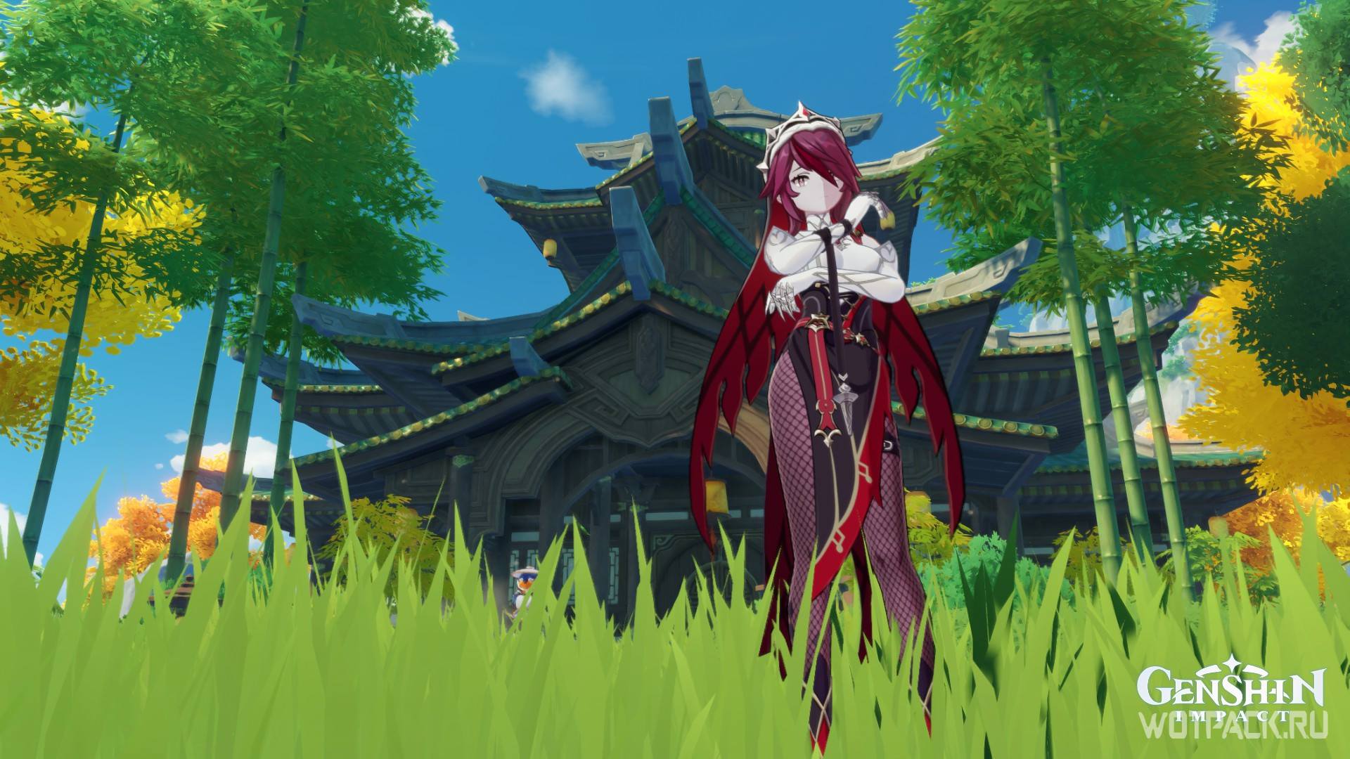 Для получения формы обители в стиле Инадзумы необходимо достигнуть 40 уровня Священной сакуры и получить предмет Шелковый принт. Подробнее читайте в специальном гайде.