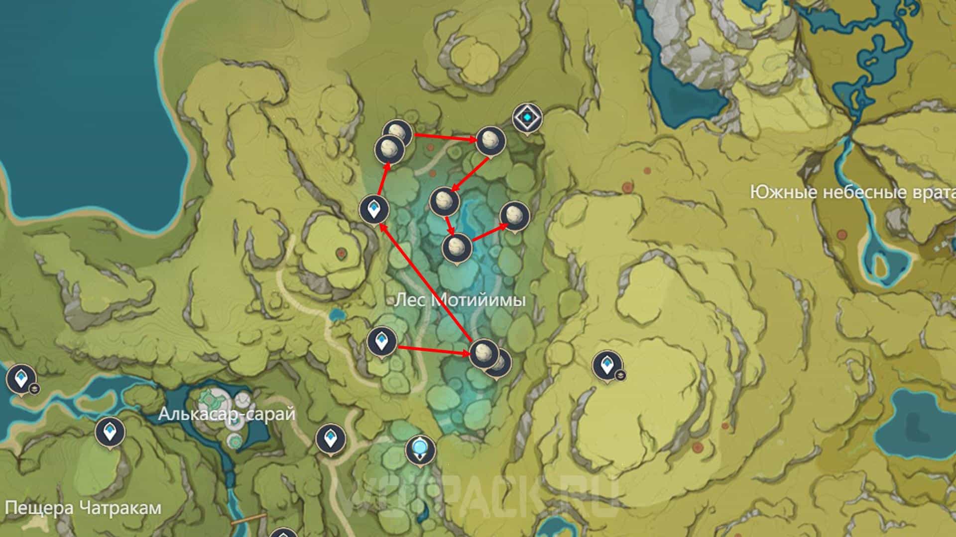 Приступайте к фарму яиц западнее Монумента ясны, откуда поднимайтесь на север и сворачивайте в Ванарану. Соберите продукт в окрестностях локации с аранарами и перемещайтесь на восток через Деревню Вимара.