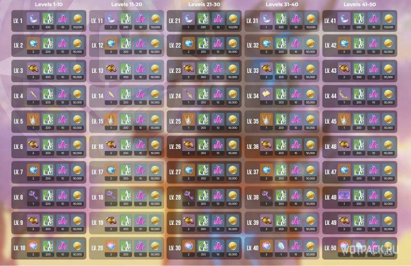 - нажмите «Награды», чтобы ознакомиться со списком ценностей, которые будут получены при получении уровня;