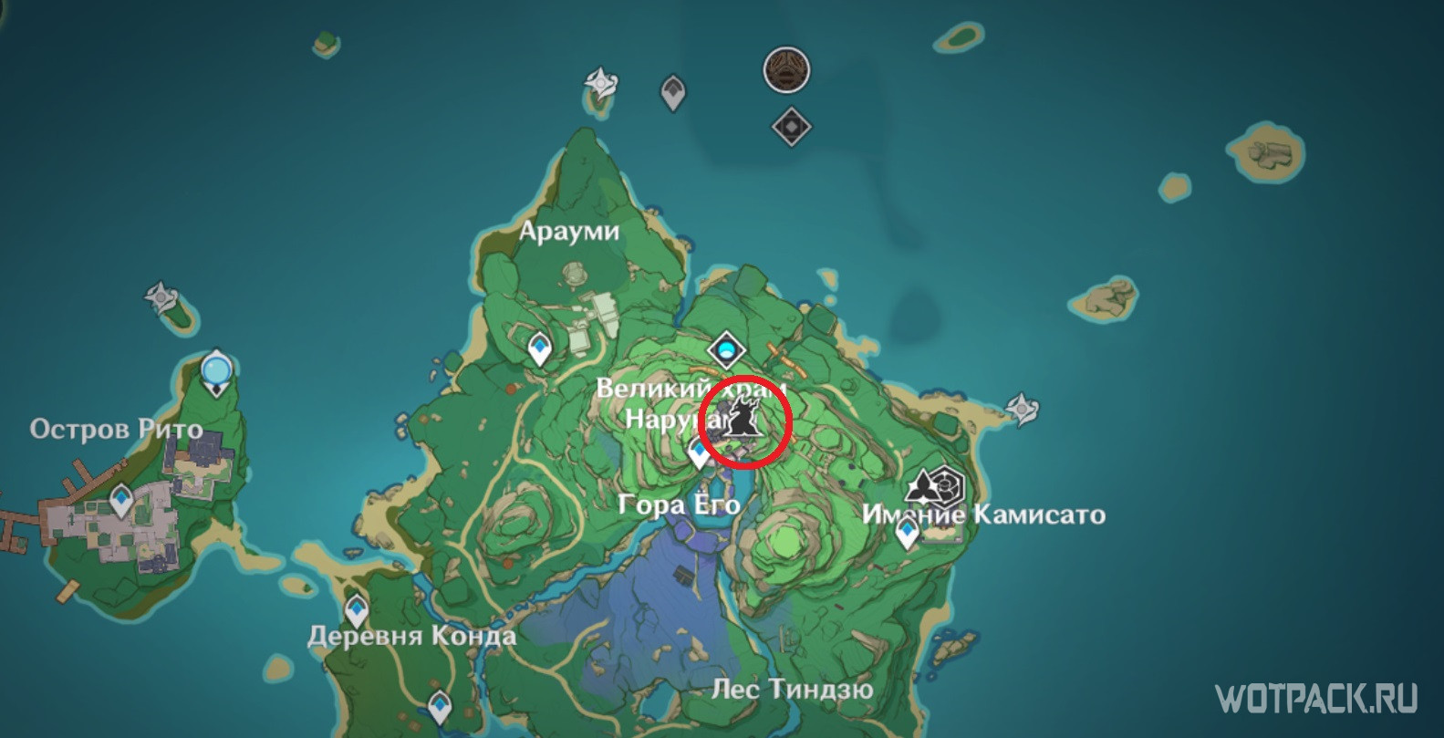 По мере прохождения сюжетного Задания Архонтов «Том II. Глава I: Неизменный бог и вечная утопия» игроки окажутся на горе у Великого храма Наруками. Здесь непосредственно за храмом и расположено древо, похожее по форме на лисицу, которая является священным животным Электро-региона.