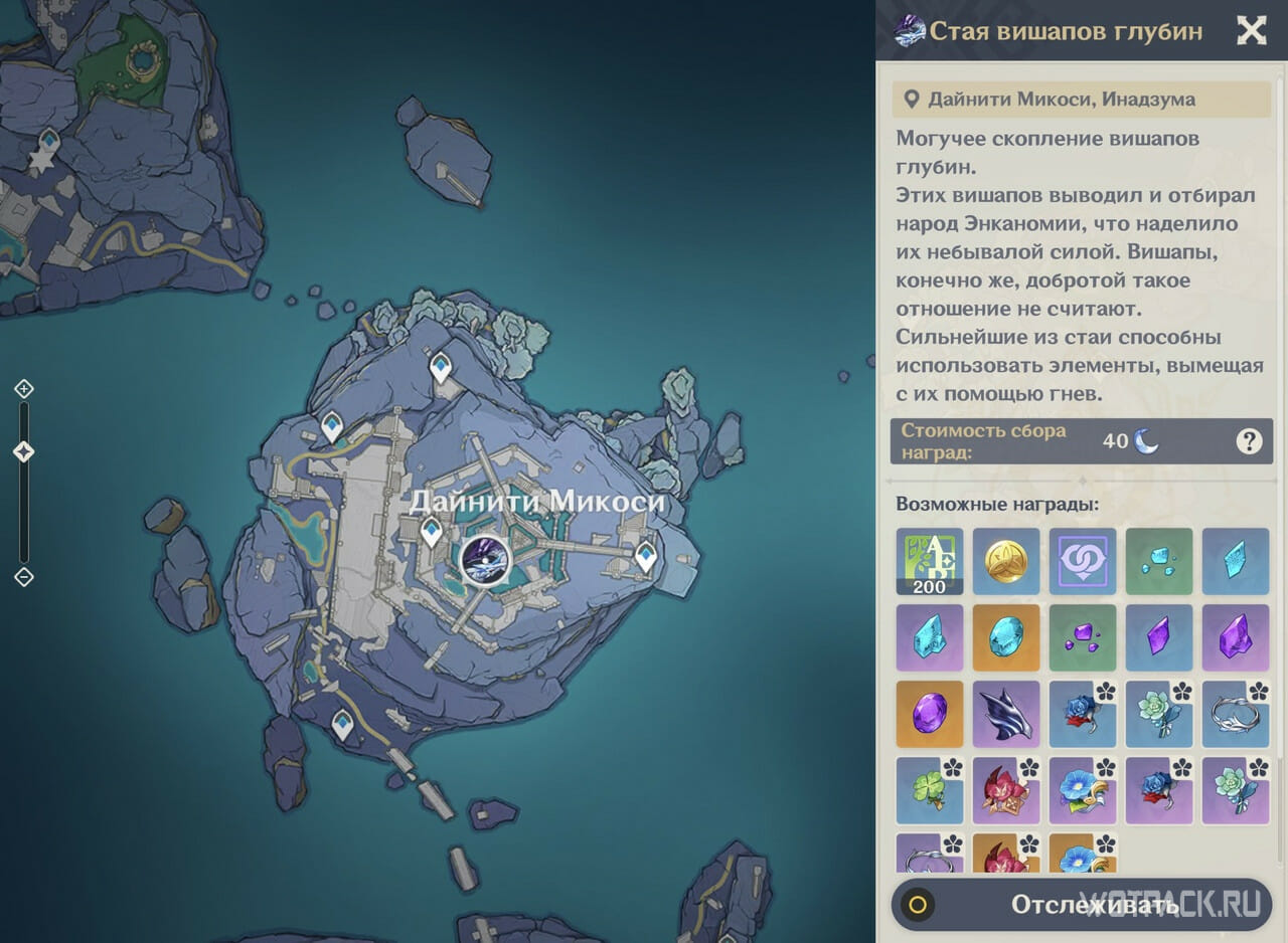 Мировые боссы в Genshin Impact располагаются в Тейвате. К ним нельзя телепортироваться напрямую, придется добежать до противника. Чтобы получить награду с такого босса необходимо потратить 40 единиц первородной смолы.