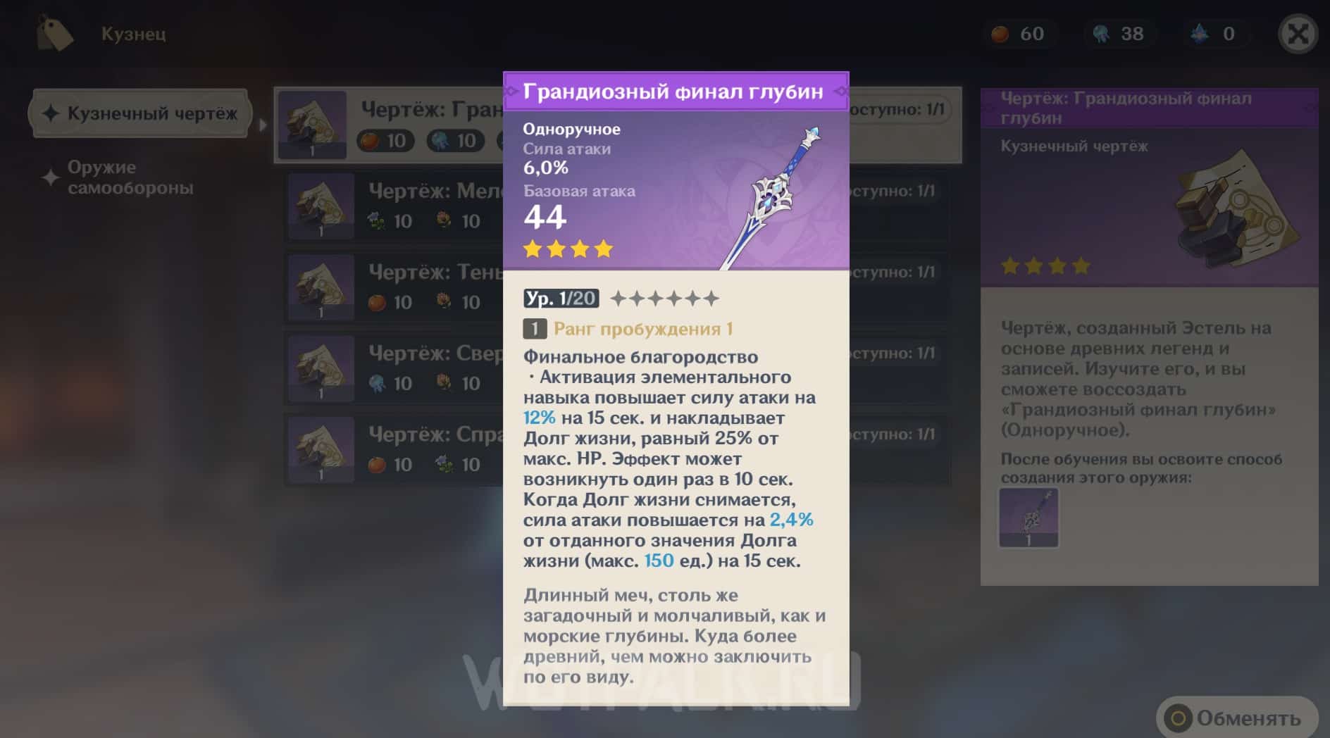 Так как это крафтовое оружие, оно более доступно для получения и пробуждения, чем остальное. В этом гайде расскажем, как получить Грандиозный финал глубин, кому подходит этот одноручный меч и как его использовать.