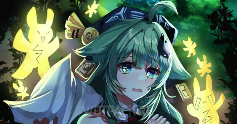 Хохо можно получить в баннере «Прыжок события: Персонаж» под названием «Цветочек во мраке».