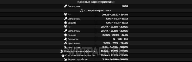 Помимо бонусов, комплект может оказать немалое влияние на силу персонажа за счет основных и дополнительных характеристик. При прокачке 5⭐ реликвий могут встретиться следующие показатели: