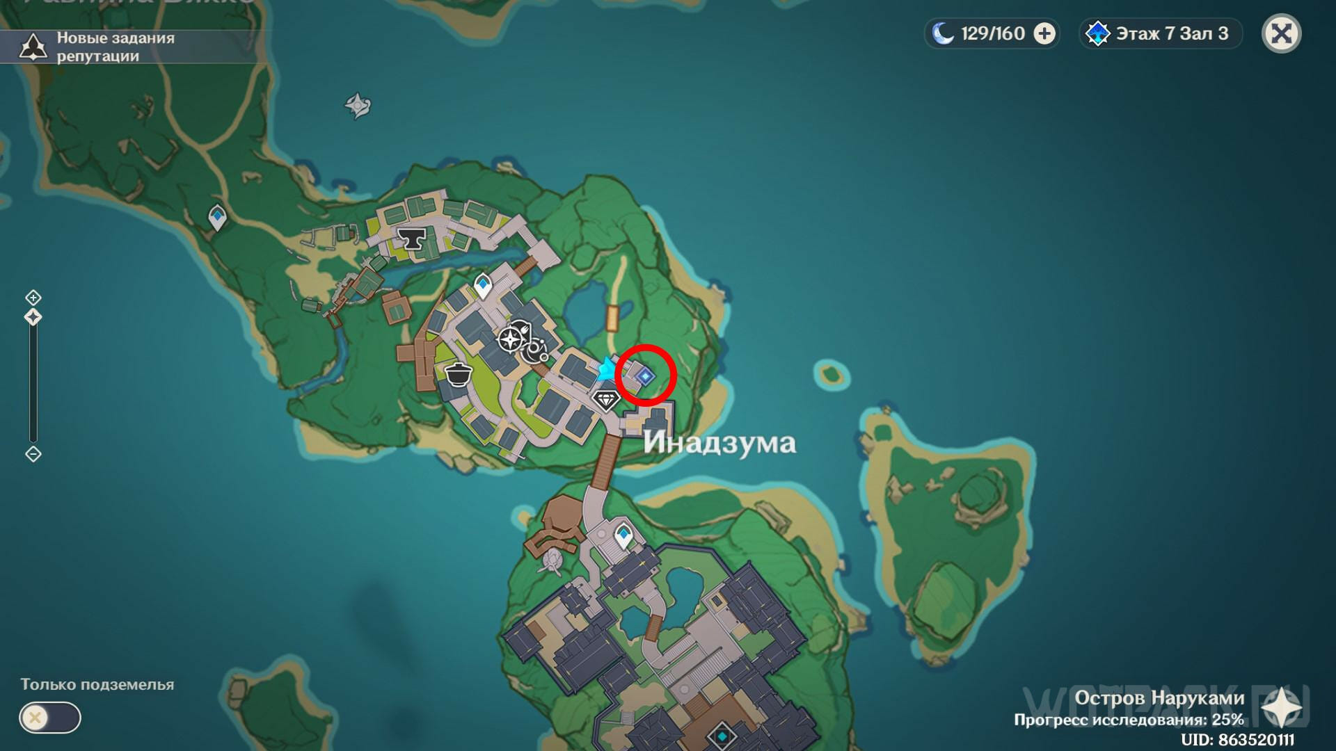Чтобы получить это достижение, поговорите с Камой на острове Рито, и он доставит Путешественника на Цуруми. Прежде чем продолжать прохождение задания, активируйте статую семи Архонтов в восточной части. Открытие карты приведет к выдаче достижения и награде в виде 5 камней истока.