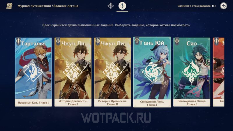 - Задания легенд. Квесты, рассказывающие истории игровых персонажей. Обычно они появляются с добавлением нового героя в игру, и за каждое задание легенд дают 60 примогемов.