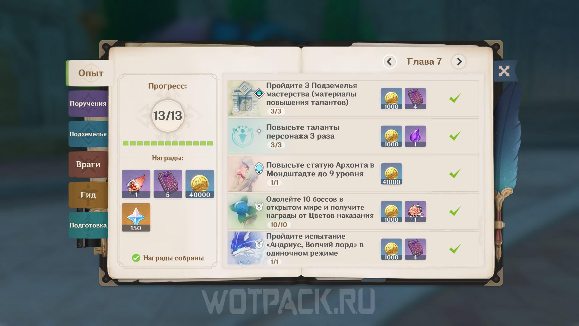 - Задания Архонтов. Сюжетные квесты, периодически добавляемые в игру с выходом новых регионов и локаций. Такие задания очень важны, так как дают доступ к остальным типам квестов, и позволяют получить до 180 камней истока.