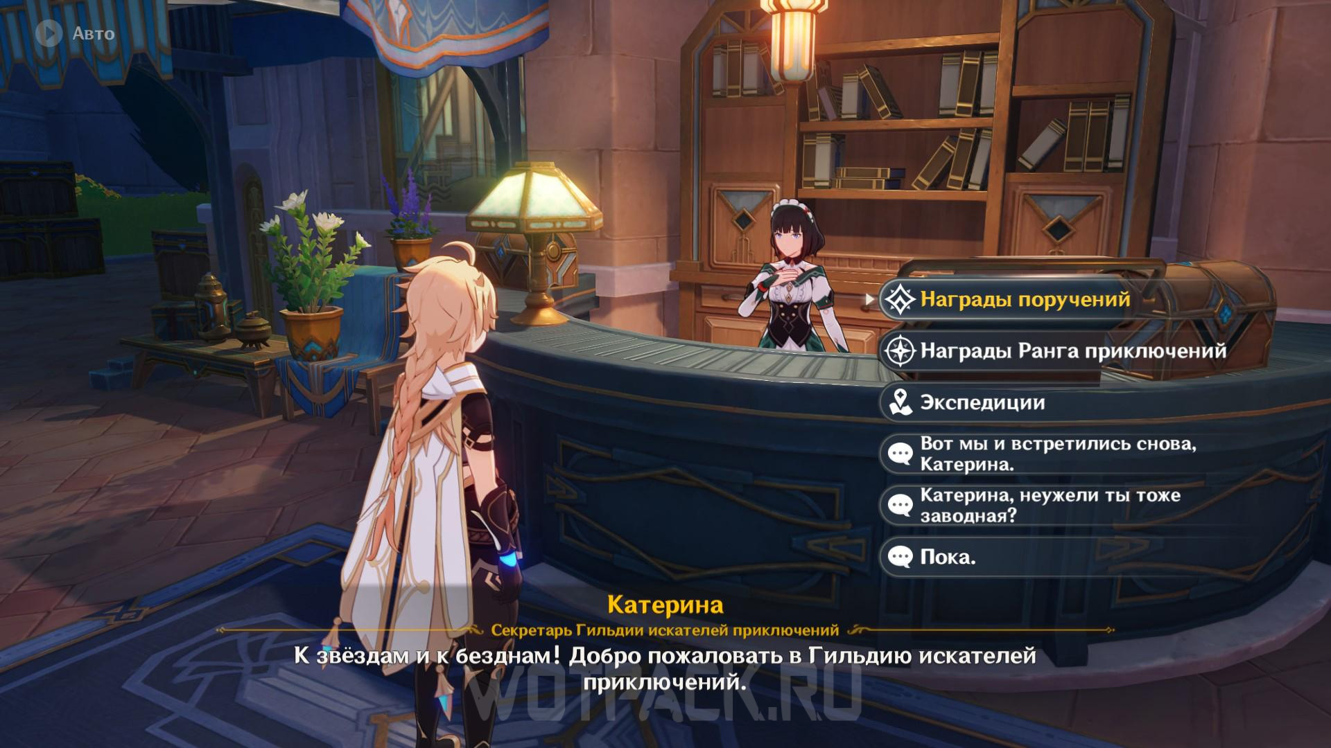 Каждый день Гильдия искателей приключений выдает 4 ежедневных поручения, появляющихся в меню заданий. За выполнение просьбы какого-нибудь НПС в Тейвате или победу над врагами можно получить 10 камней истока. За выполнение всех четырех поручений Катерина дает дополнительно 20 примогемов, что позволяет в день получить 60 камней истока.