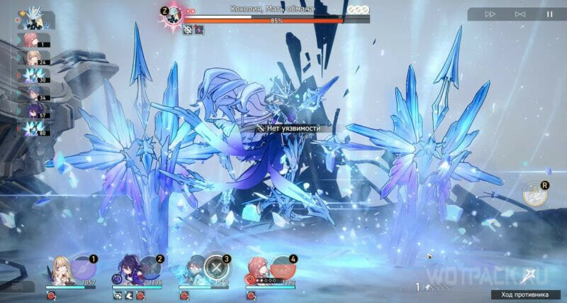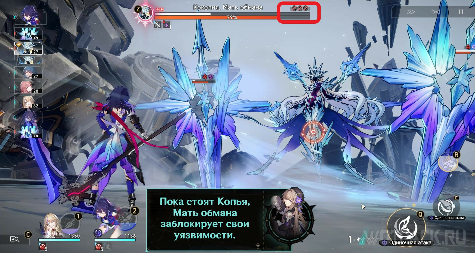 - Фокусируйтесь на Копьях бесконечного холода Коколии сразу после того, как она призовет их. Пока Копья стоят, у Коколии будут заблокированы уязвимости, что на практике означает невозможность снять ее полоску стойкости и совершить пробитие уязвимости.