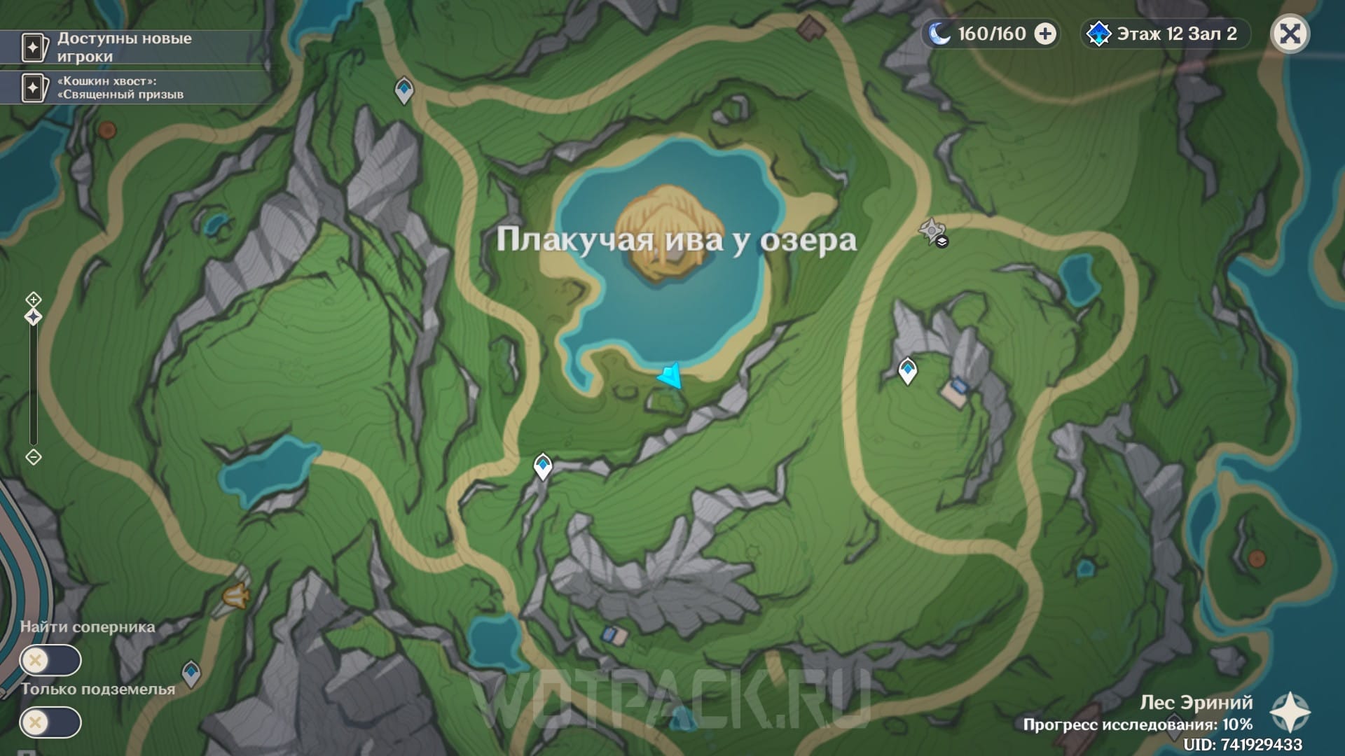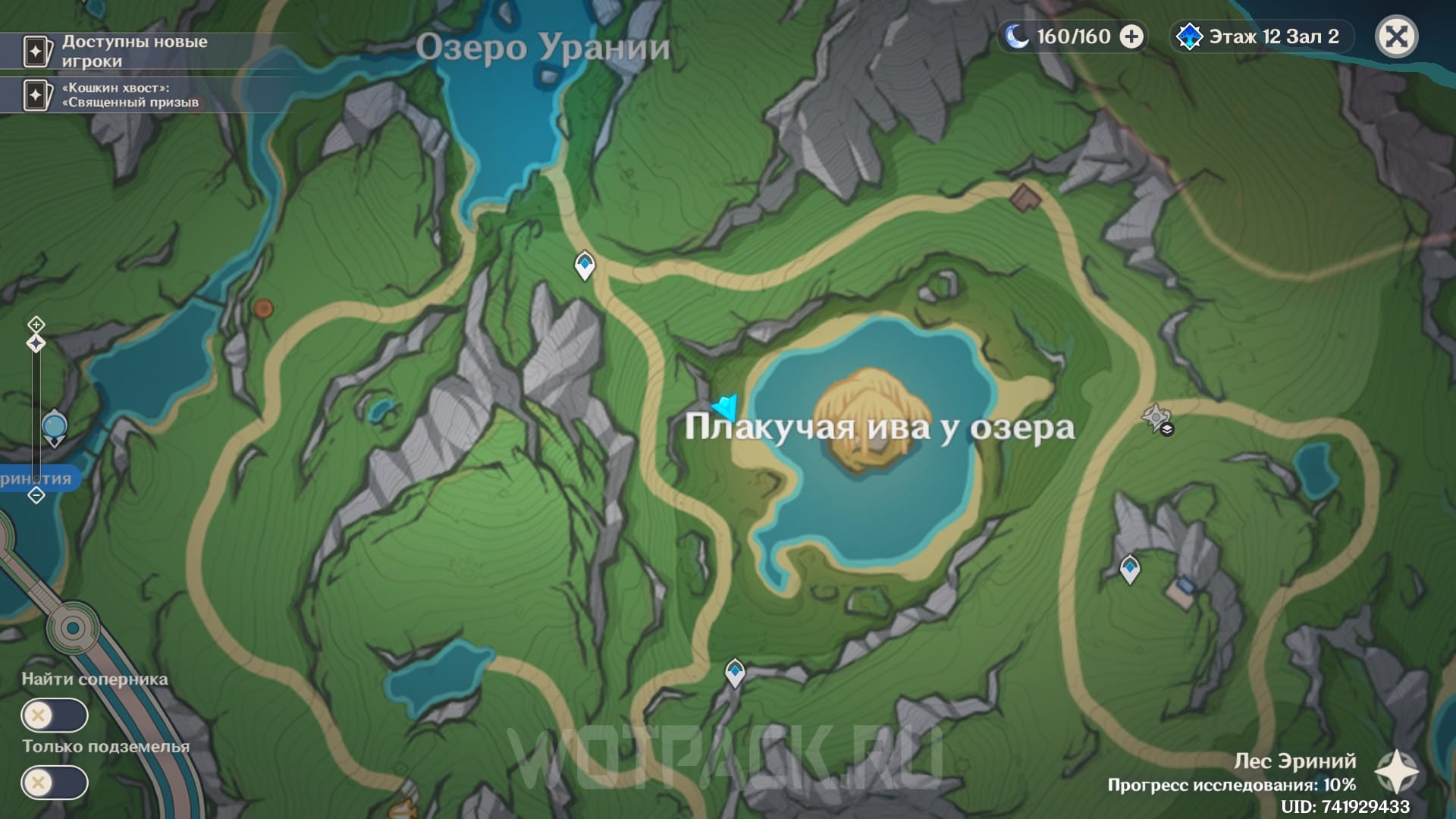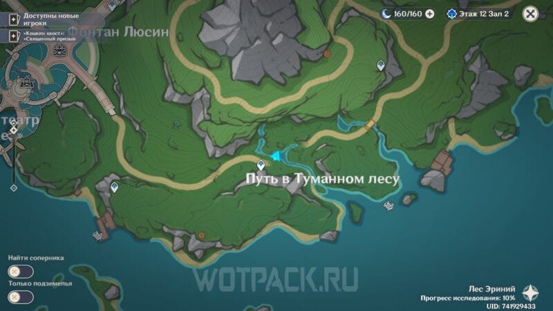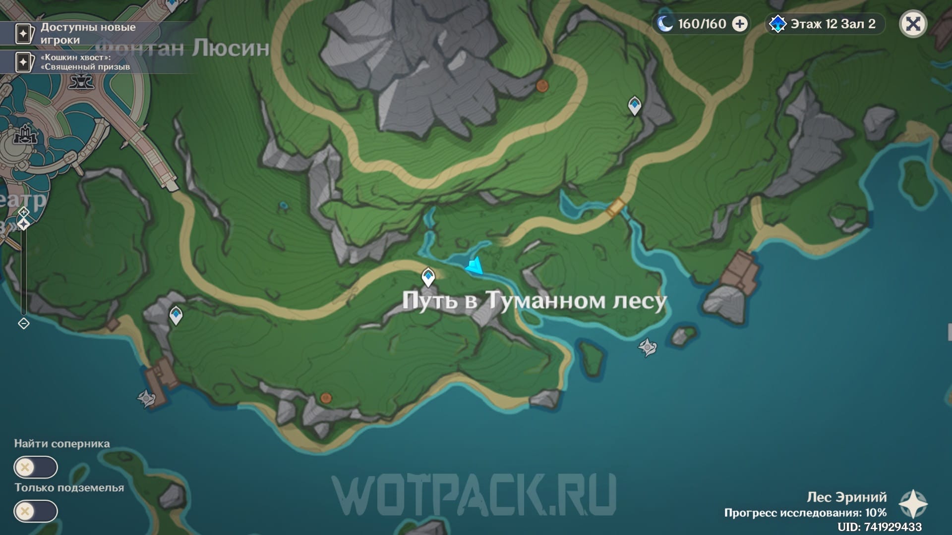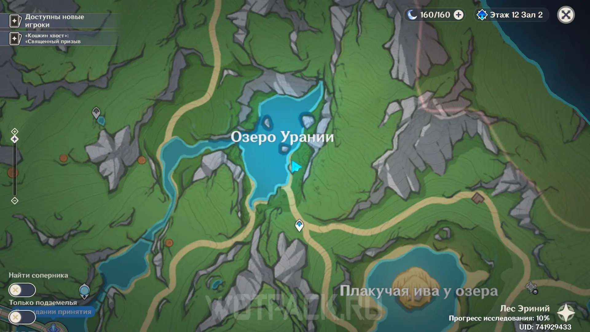 На юге Леса Эриний, в локации Путь в Туманном лесу, на берегу небольшой реки произрастает 10 лилий озерного света.