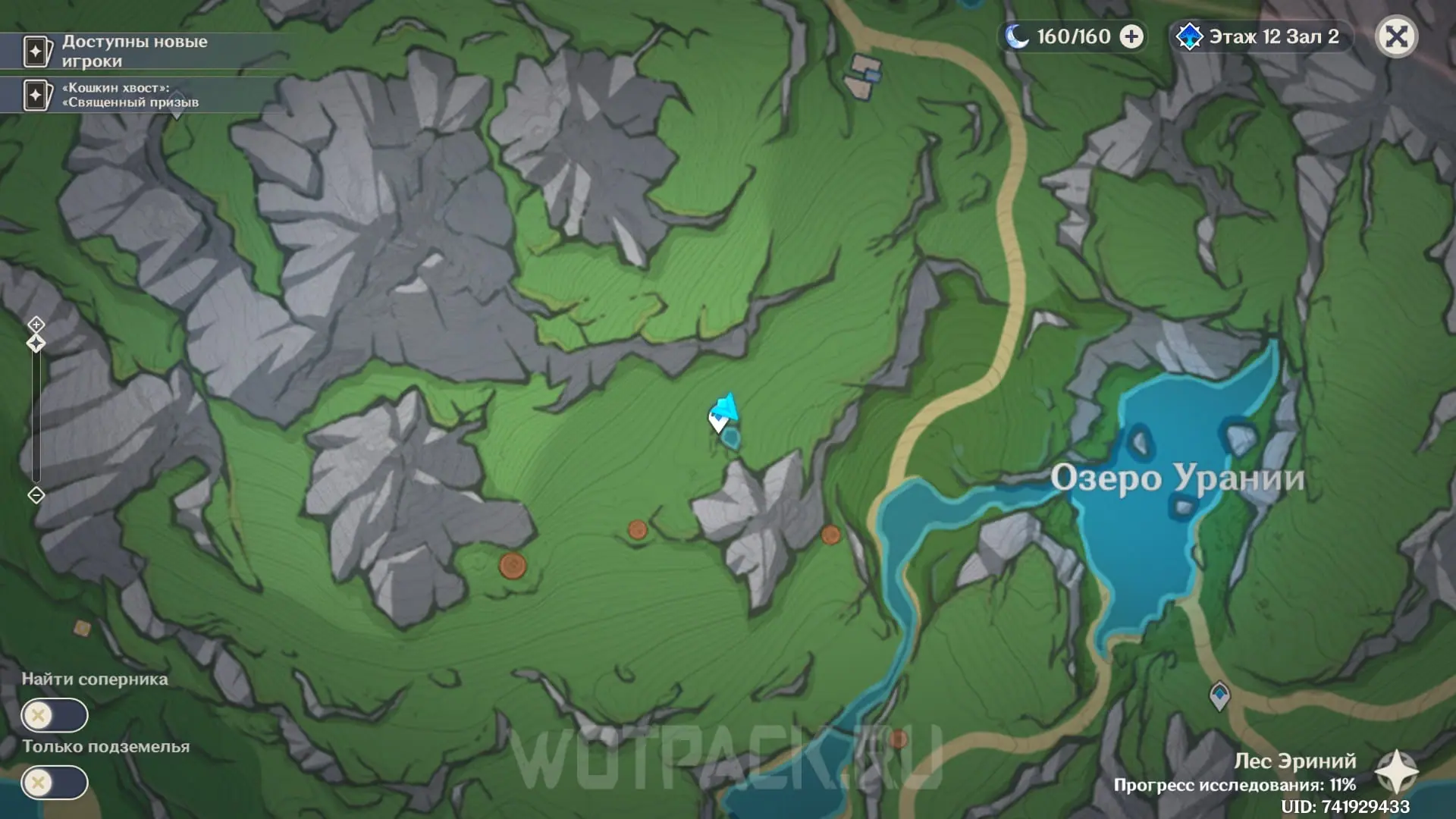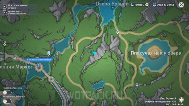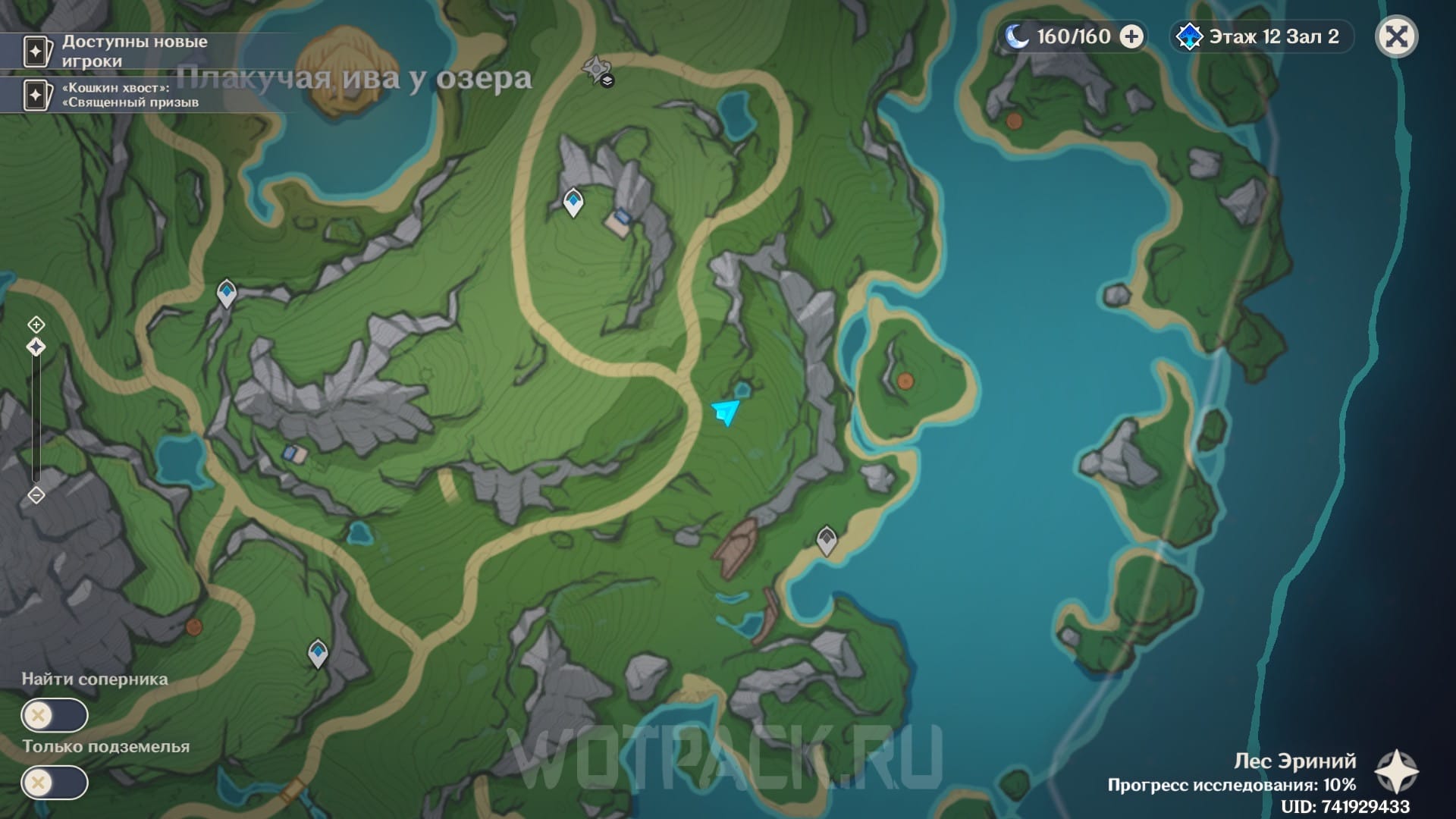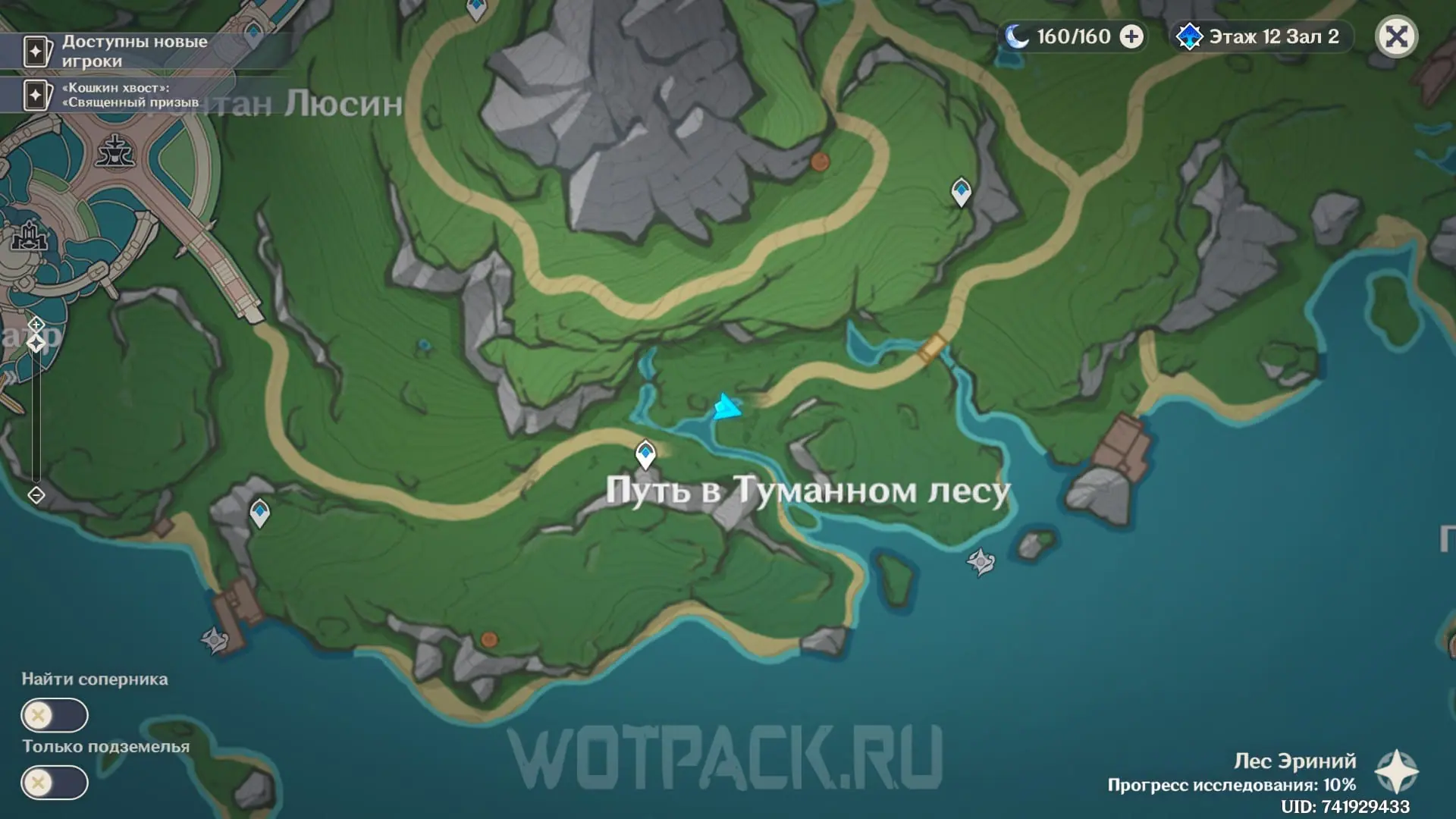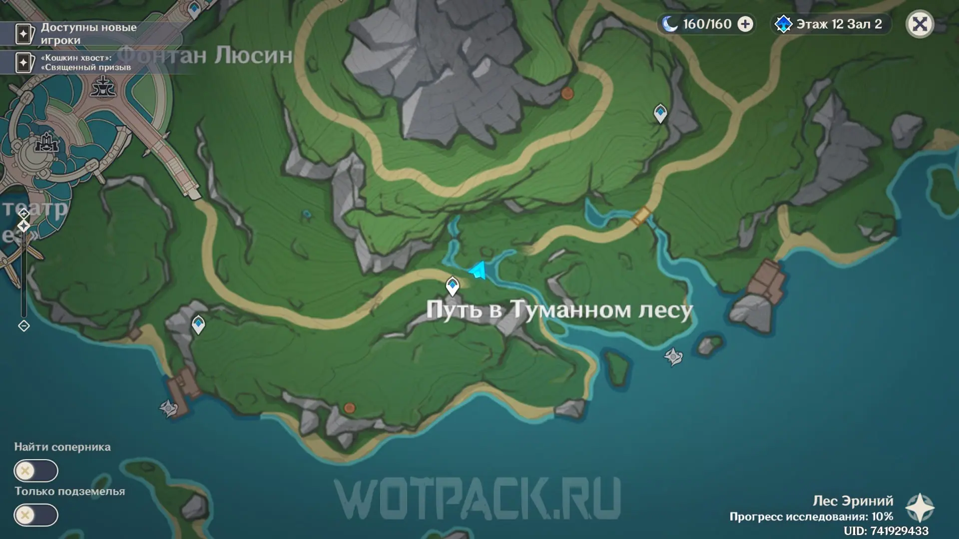 На юге Леса Эриний, в локации Путь в Туманном лесу, на берегу небольшой реки произрастает 10 лилий озерного света.