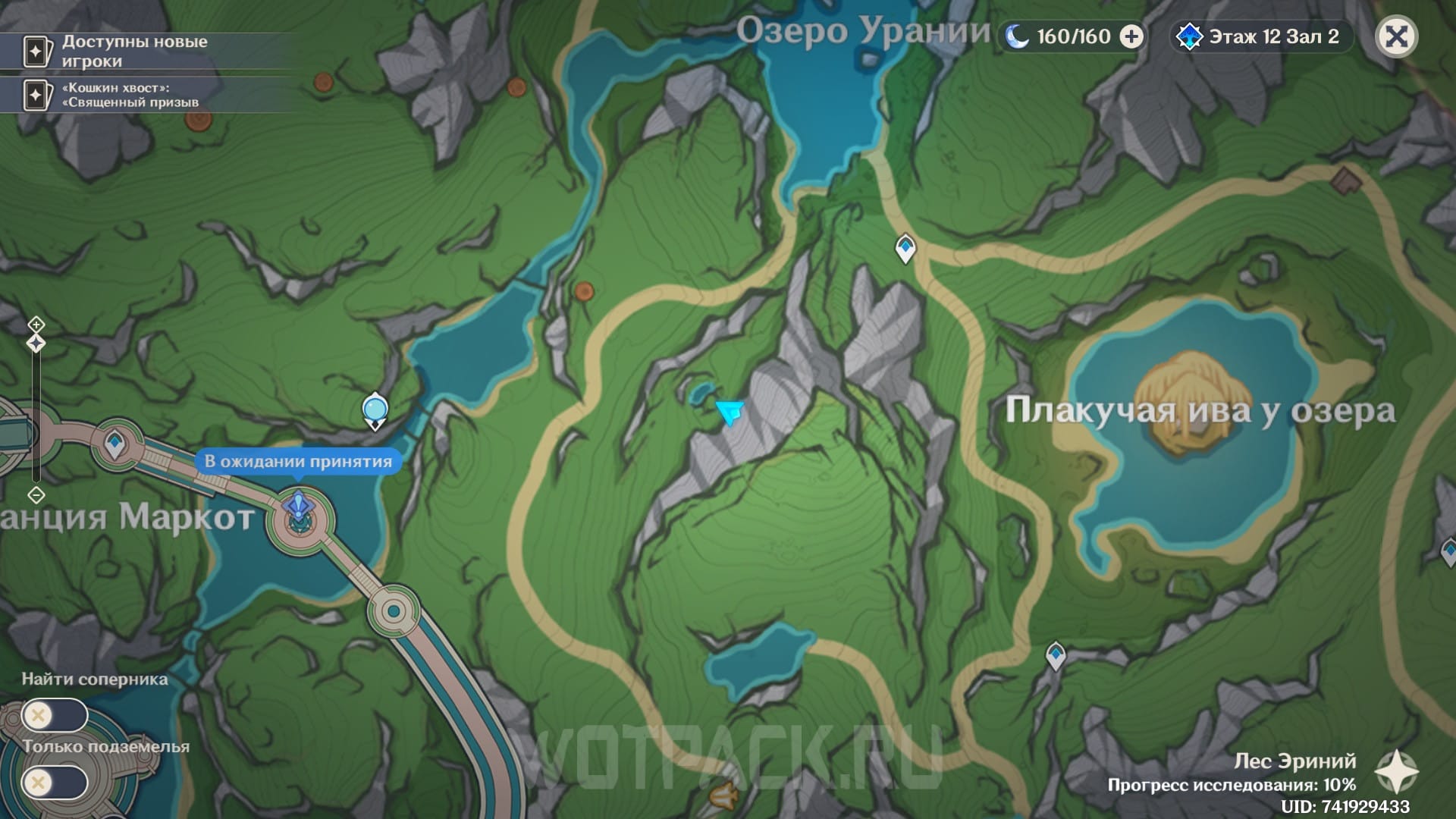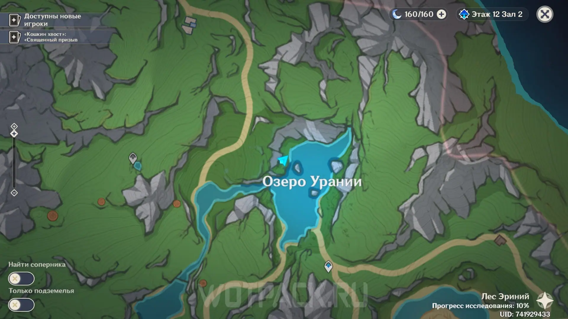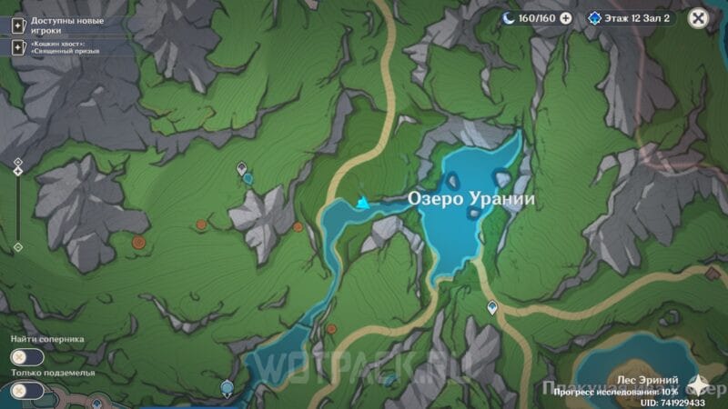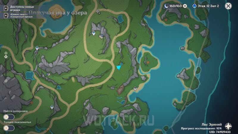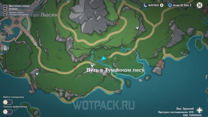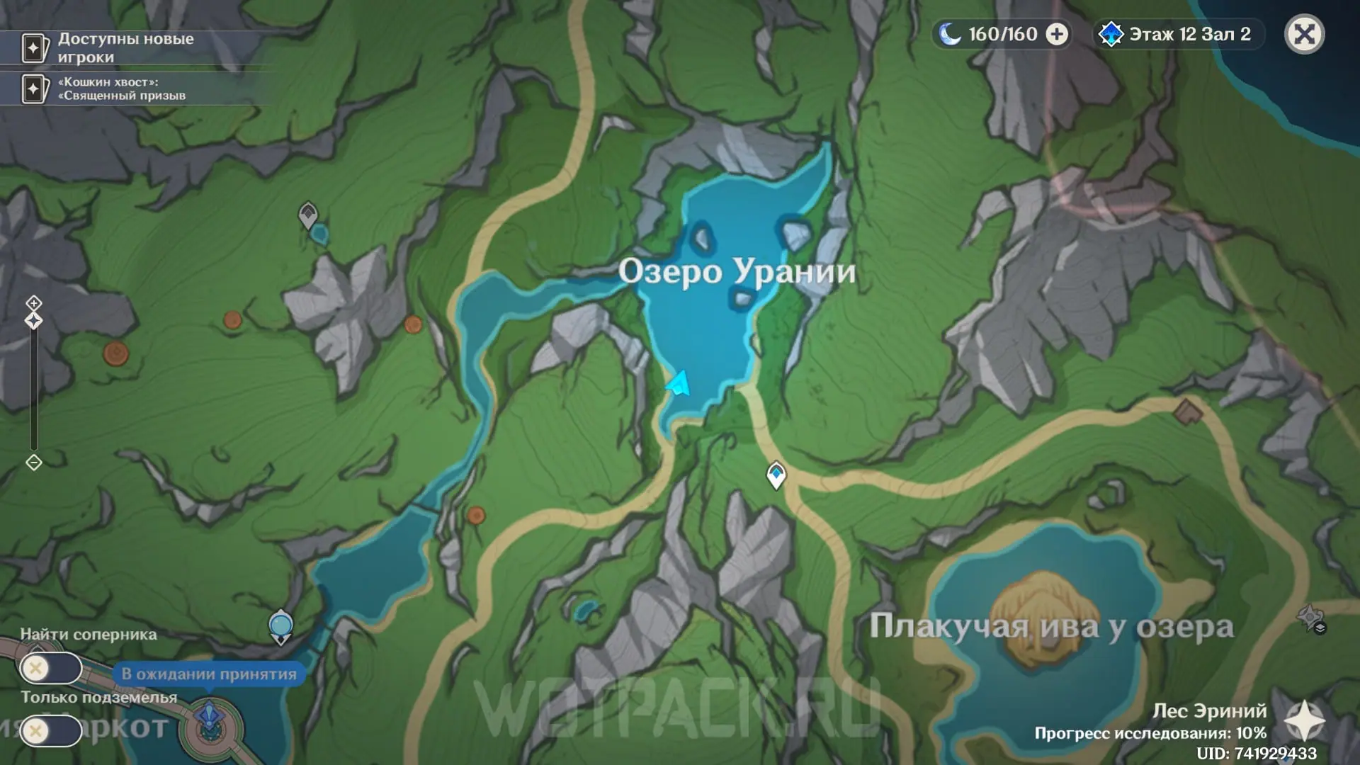 На юге Леса Эриний, в локации Путь в Туманном лесу, на берегу небольшой реки произрастает 10 лилий озерного света.