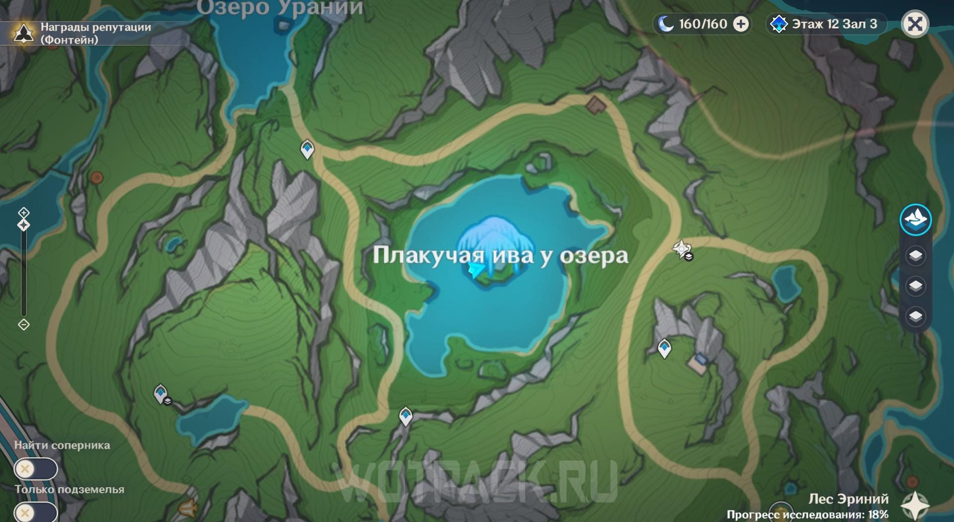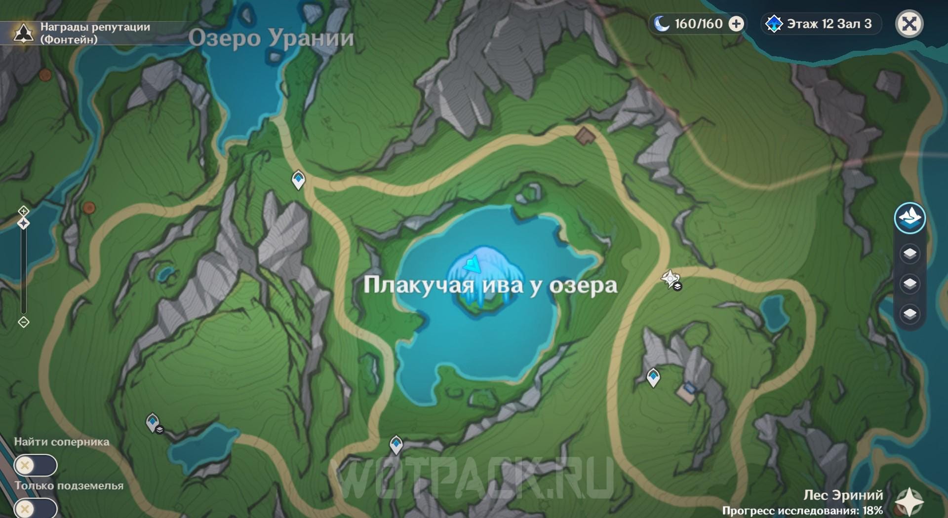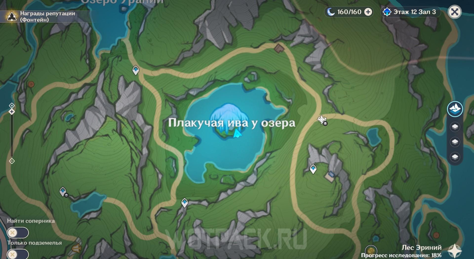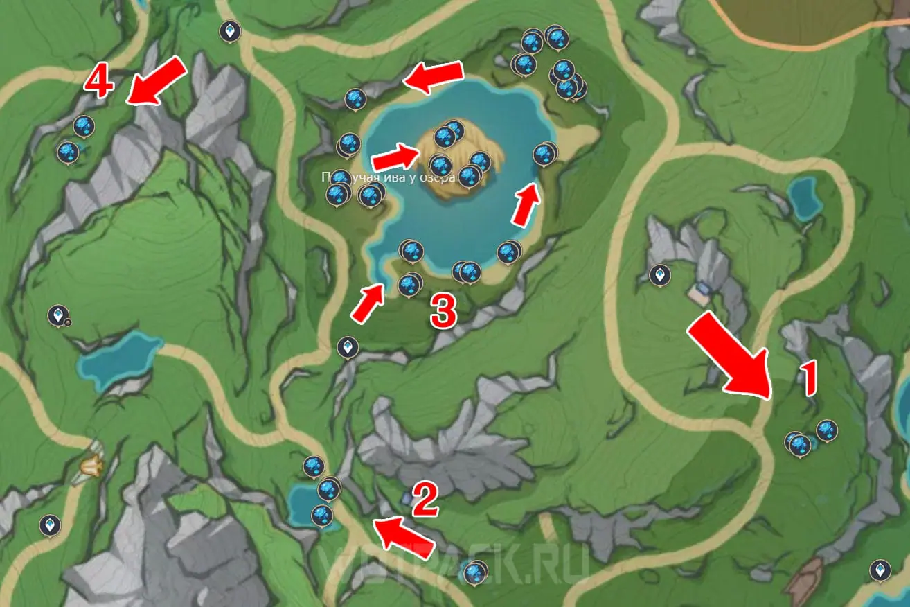 Под ивой к югу от озера можно собрать один цветок. После восстановления ивы на этом месте будет уже два растения.