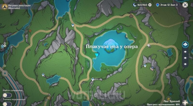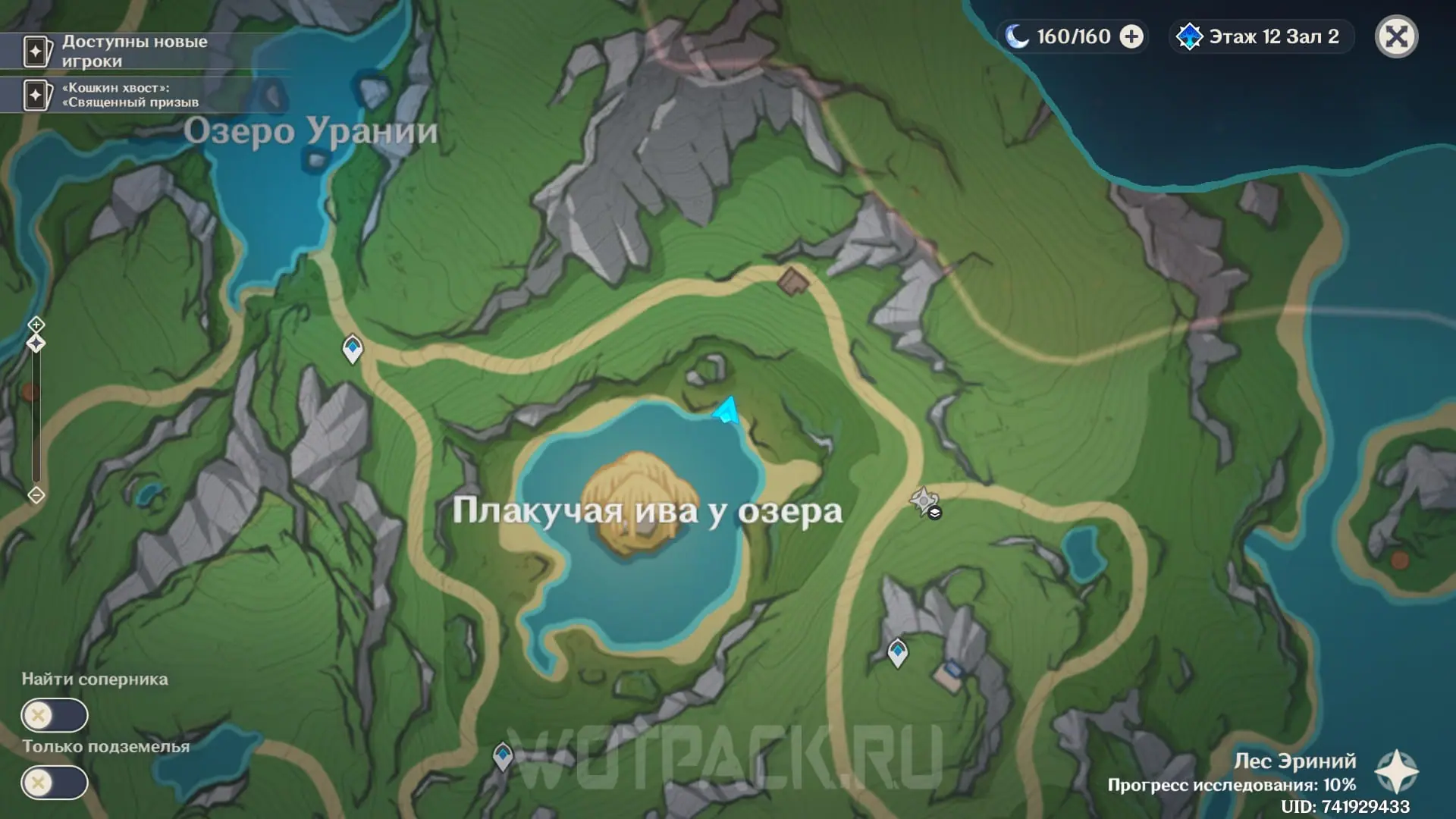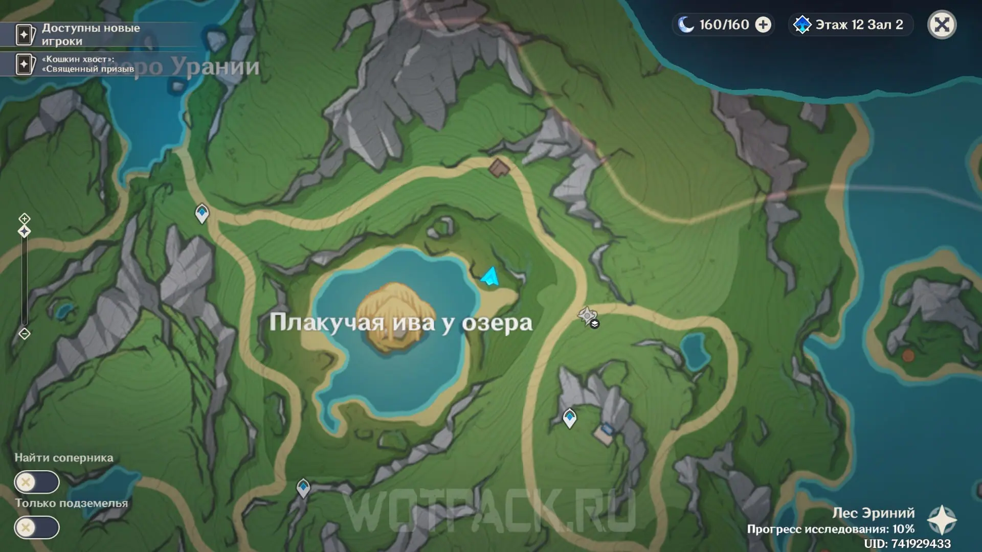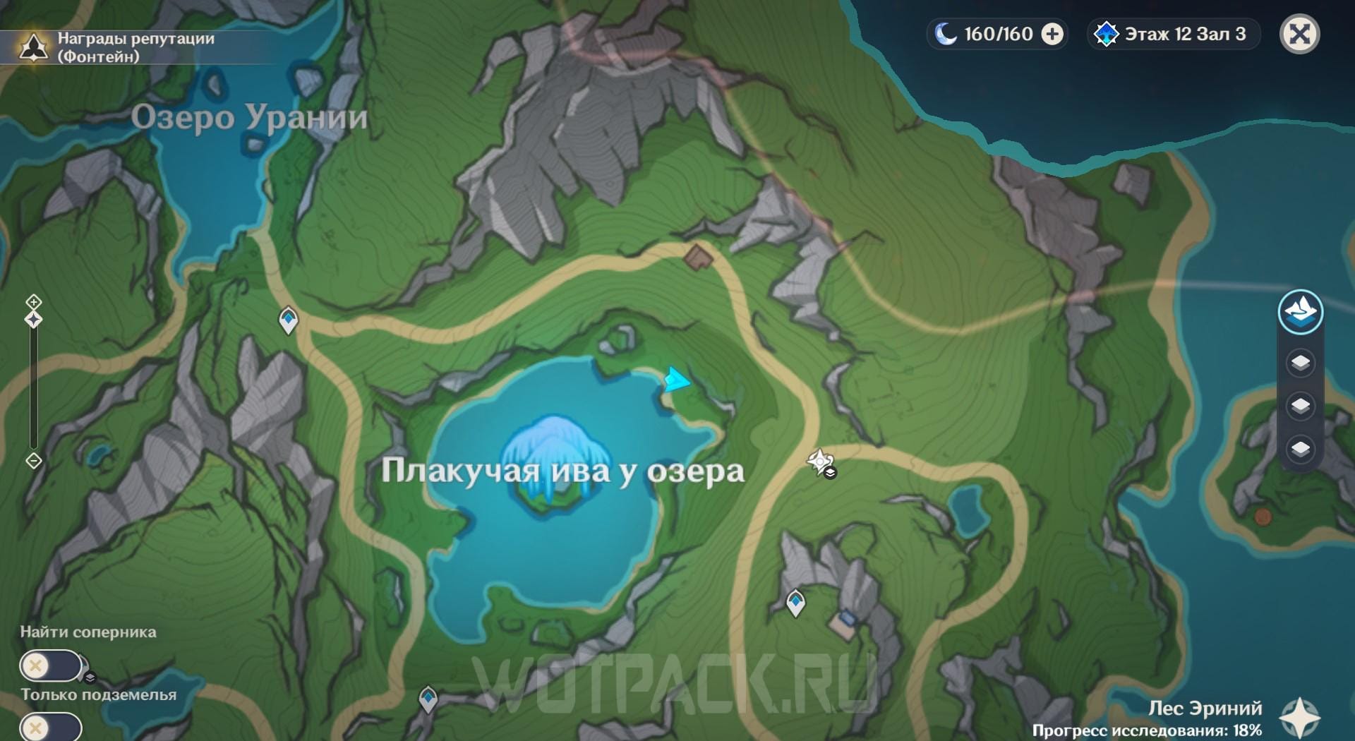 Под ивой к югу от озера можно собрать один цветок. После восстановления ивы на этом месте будет уже два растения.