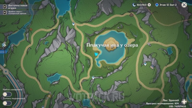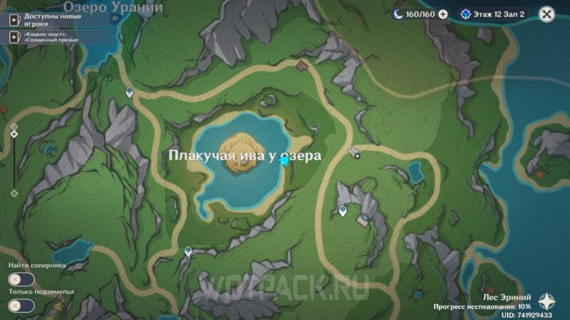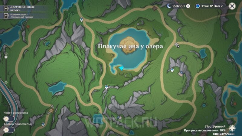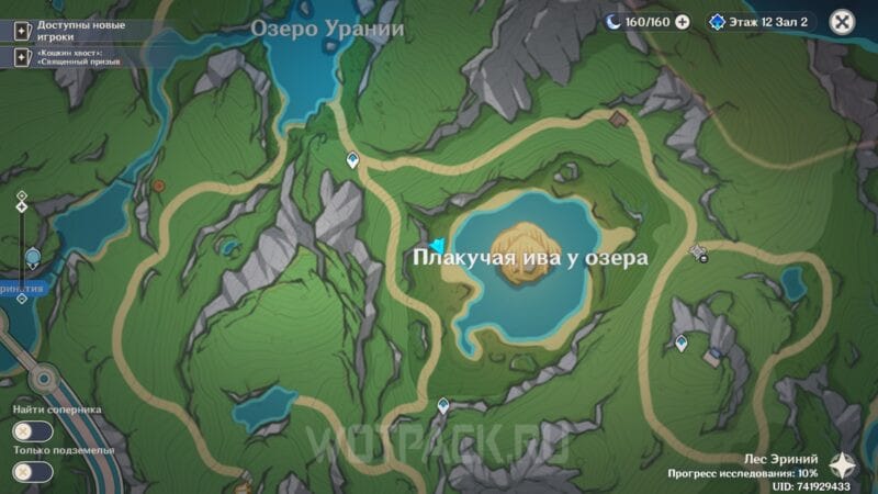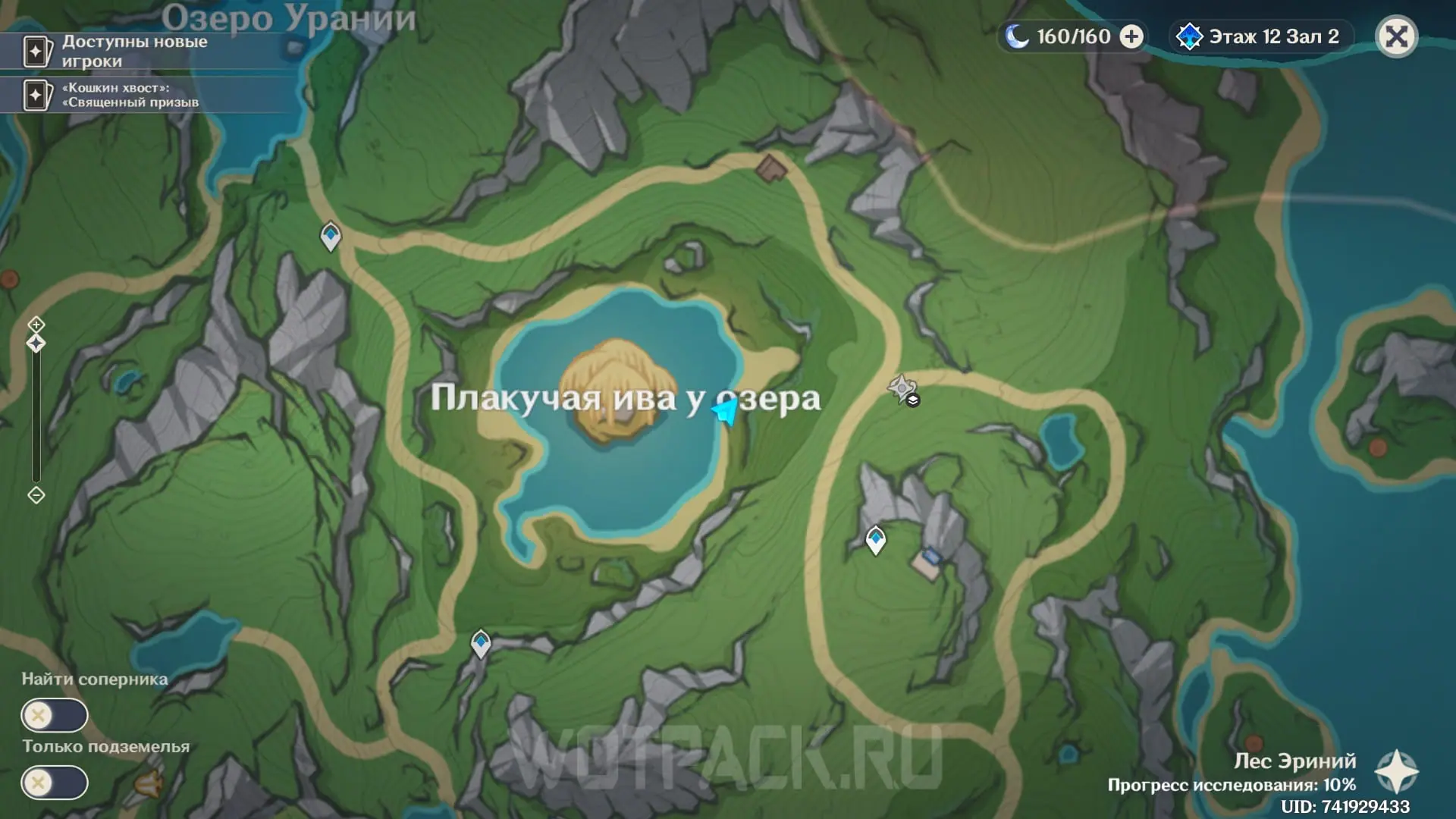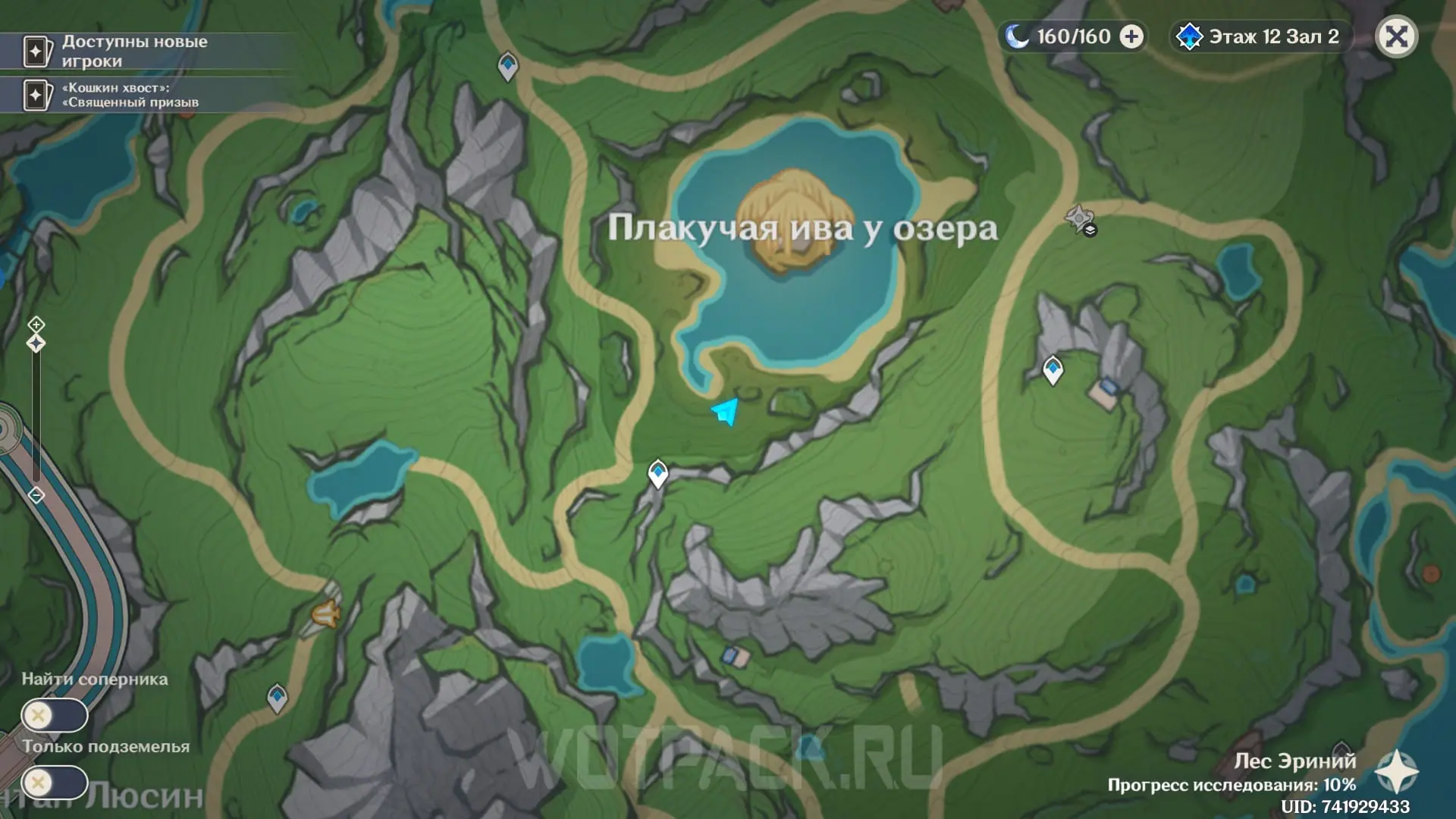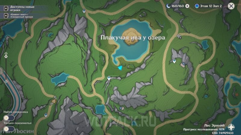 Под ивой к югу от озера можно собрать один цветок. После восстановления ивы на этом месте будет уже два растения.