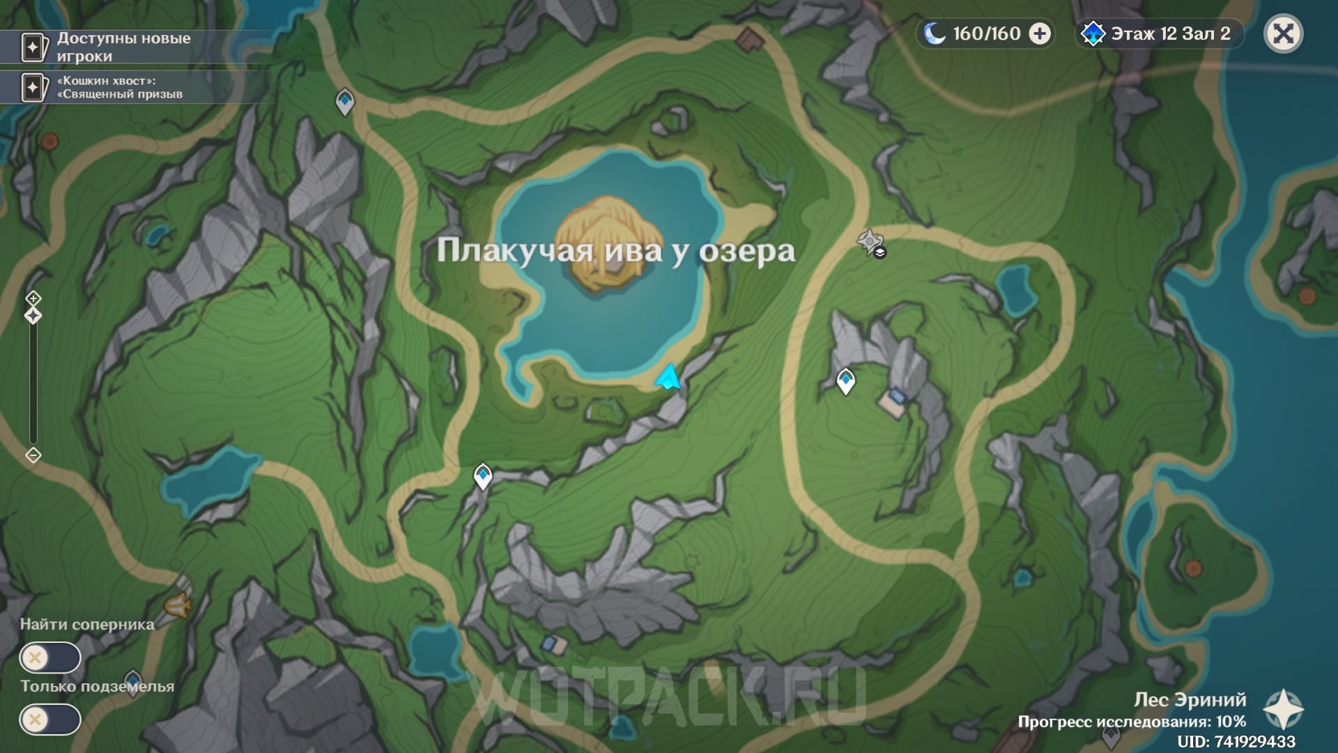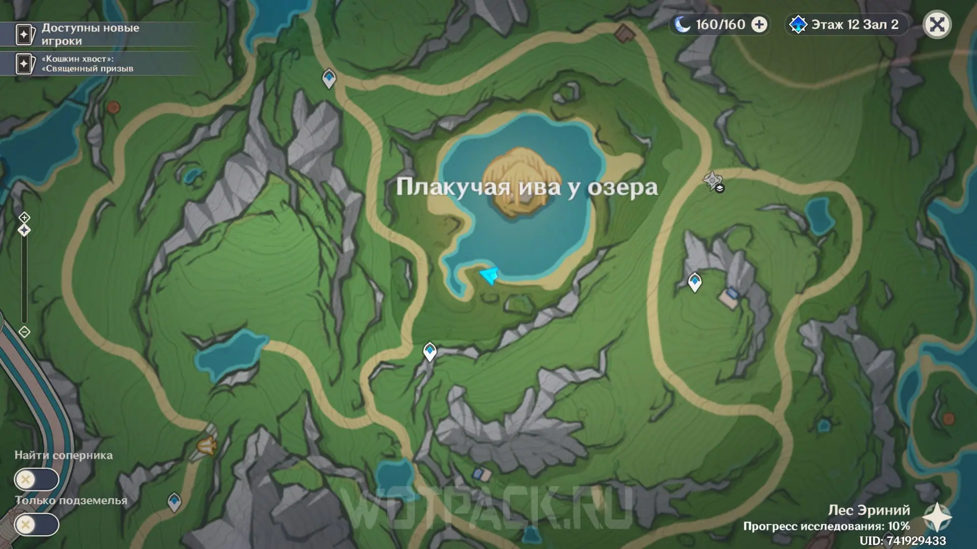 У озера, на котором растет гигантская плакучая ива, и в его окрестностях в сумме получится отыскать и собрать 51 лилия озерного света. Часть растений в этой области становится доступна или появляется в мире только после оживления древа в рамках квестовой цепочки «Дикая фея Эриний».
