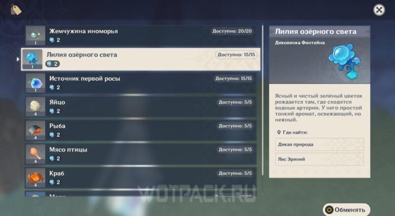 Где найти Лилию озерного света в Genshin Impact: маршруты фарма