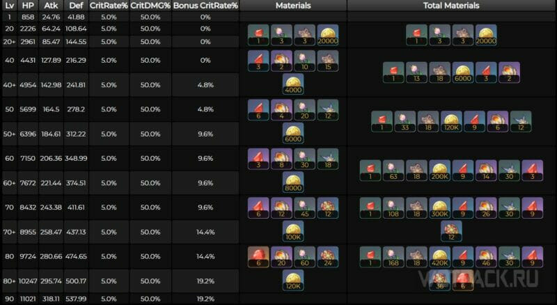 | Уровень | Базовое HP | Базовая атака | Базовая защита | Шанс крит. попадания |