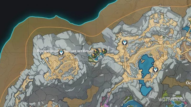 В подземных шахтах можно найти только 3 цветка львиного зева. Воспользуйтесь ближайшими телепортами, чтобы добраться до растений. Они находятся на дне пещеры.