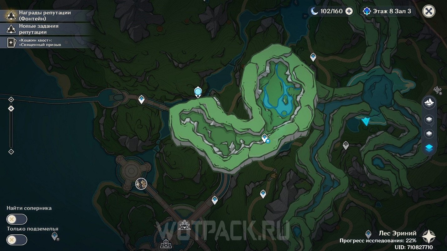 Магический меч Круж находится в подводной пещере, куда можно переместиться с помощью подземного телепорта. Эта область доступна только после полного прохождения задания «Дикая фея Эриний». Очистите лес вместе с Пахсив, а после вернитесь в данную локацию, чтобы босс появился на своем месте.